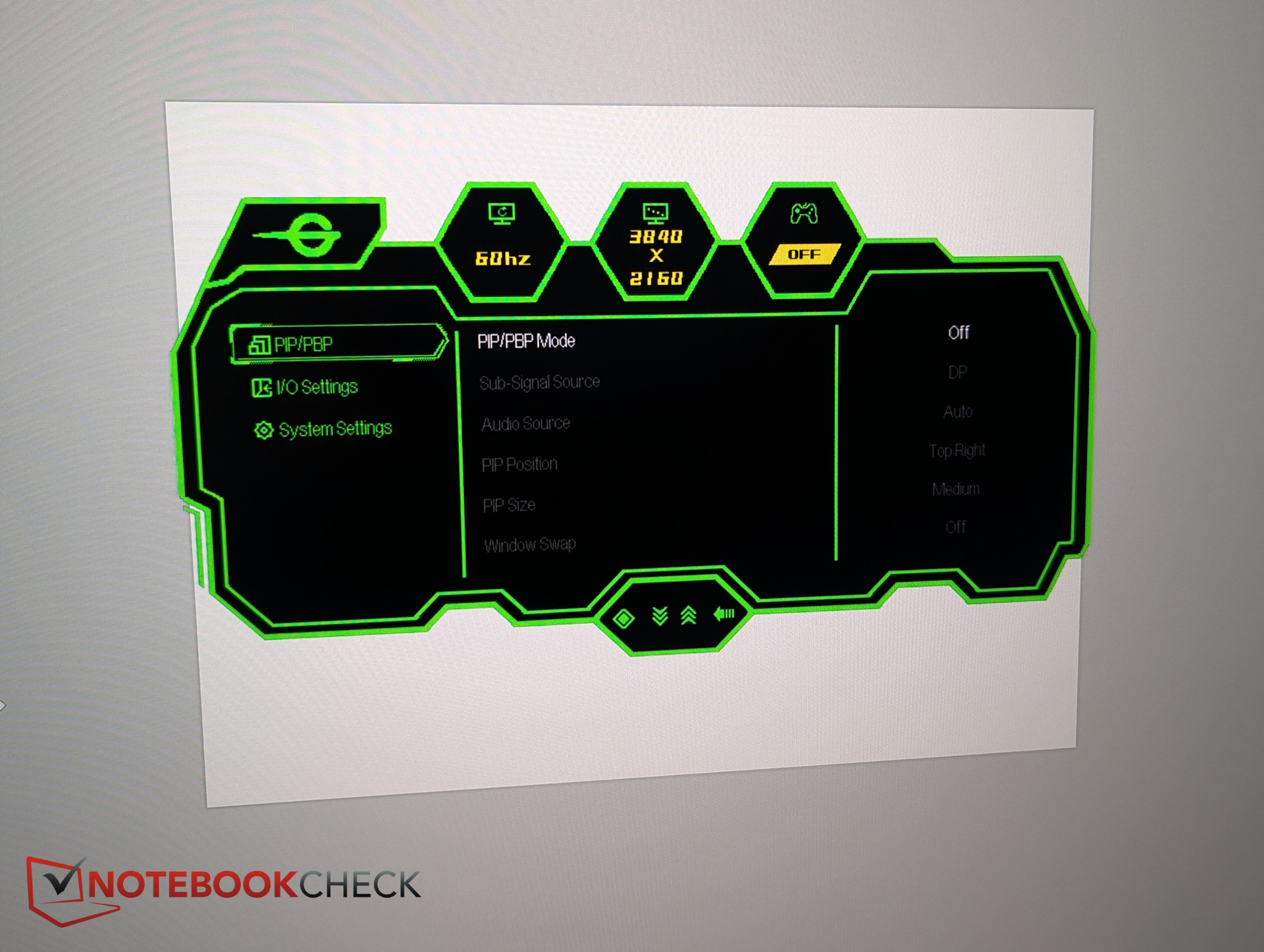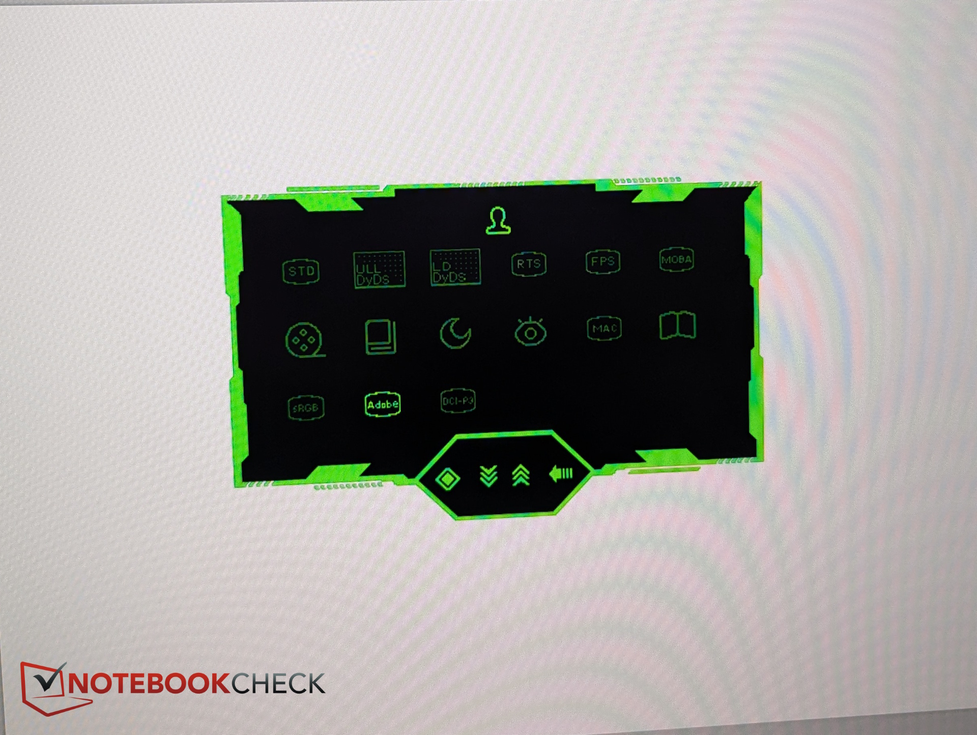 Menu ekranowe zawiera 15 ustawień obrazu. Obejmują one przestrzenie kolorów, takie jak sRGB, DCI-P3 i AdobeRGB, a także tryby specyficzne dla gier, takie jak: