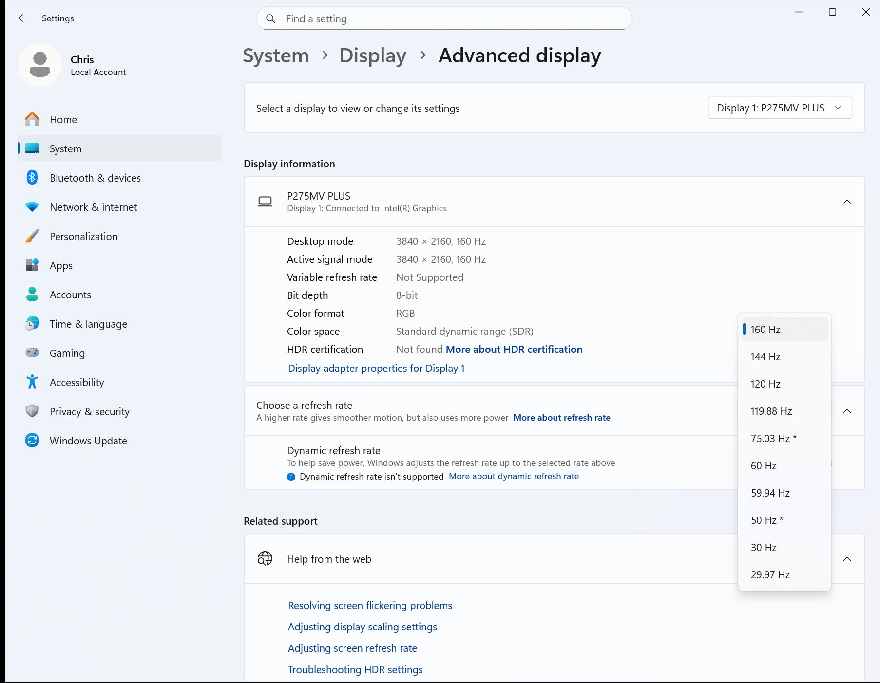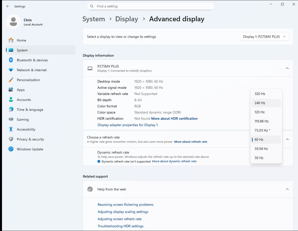 Tryb podwójny jest zdecydowanie najważniejszy. W natywnej rozdzielczości 4K monitor działa z częstotliwością do 160 Hz. Po przełączeniu na 1920 × 1080 częstotliwość odświeżania skacze do 320 Hz.