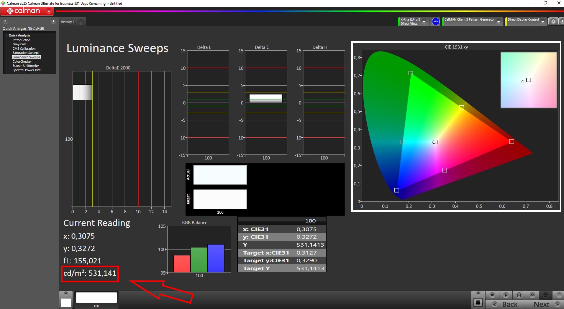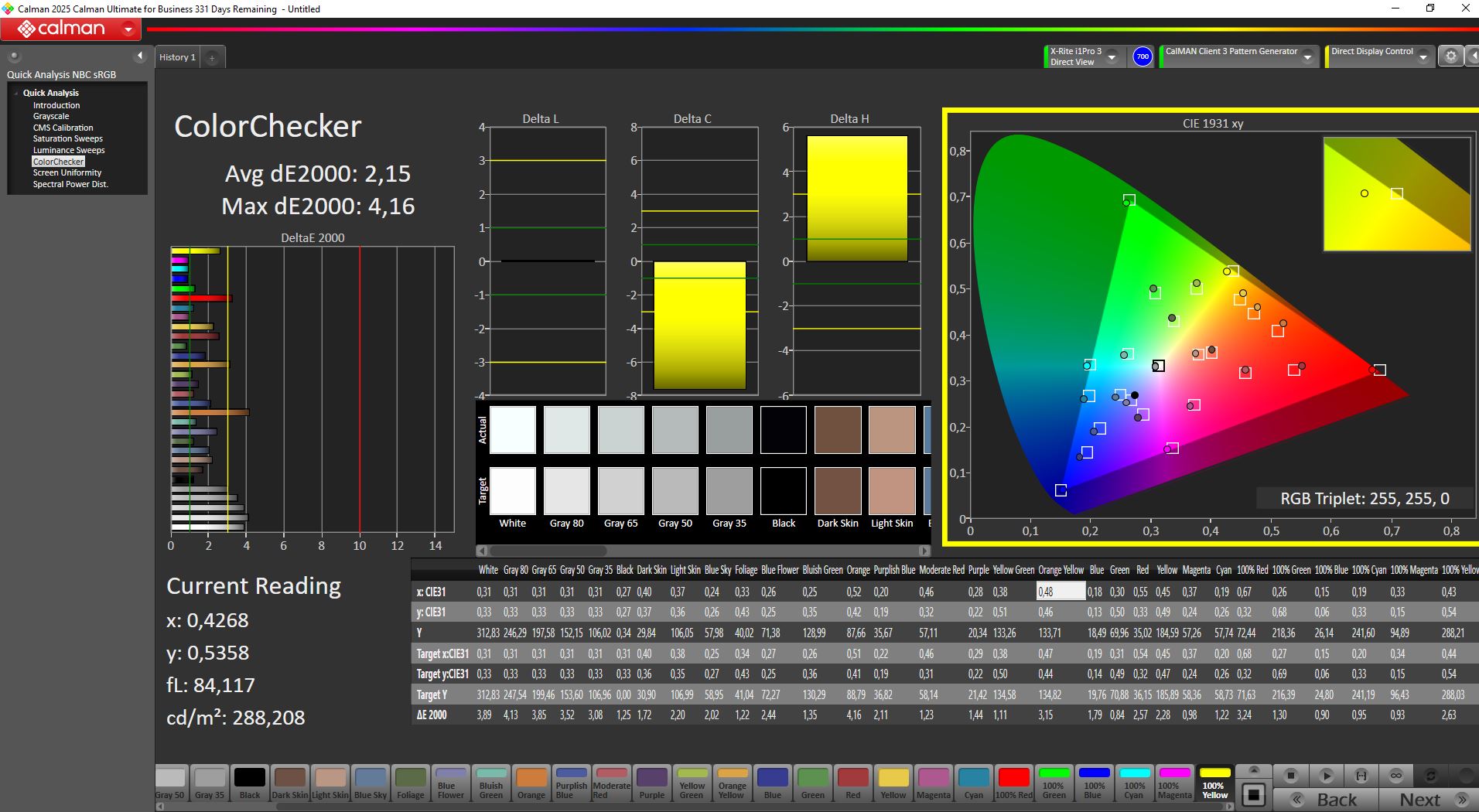 Po wyjęciu z pudełka wyświetlacz jest dość dobrze skalibrowany. Po ręcznej kalibracji, odchylenia skali szarości i kolorów zostały jeszcze bardziej zredukowane, osiągając średni deltaE na poziomie około 1,3.