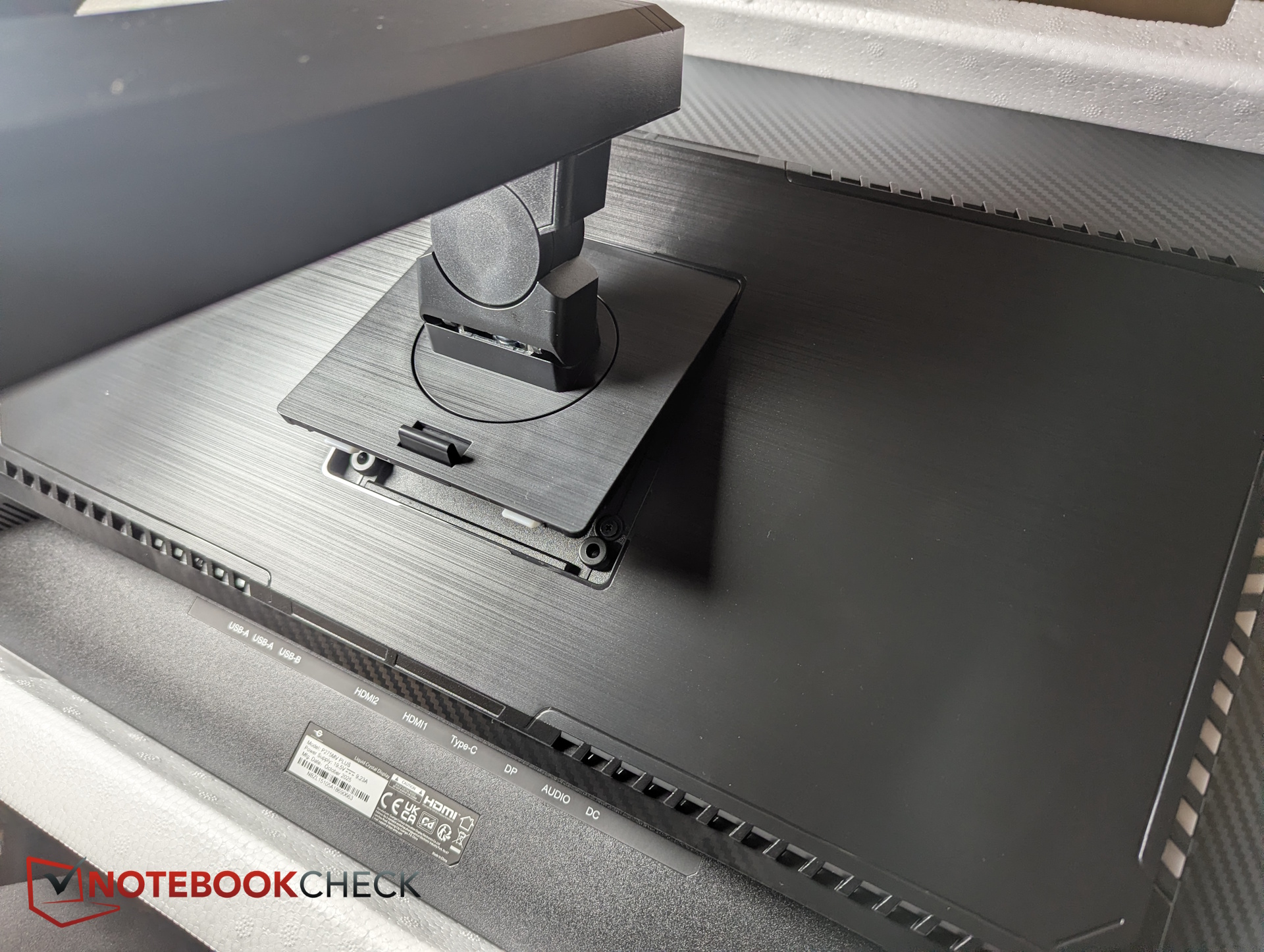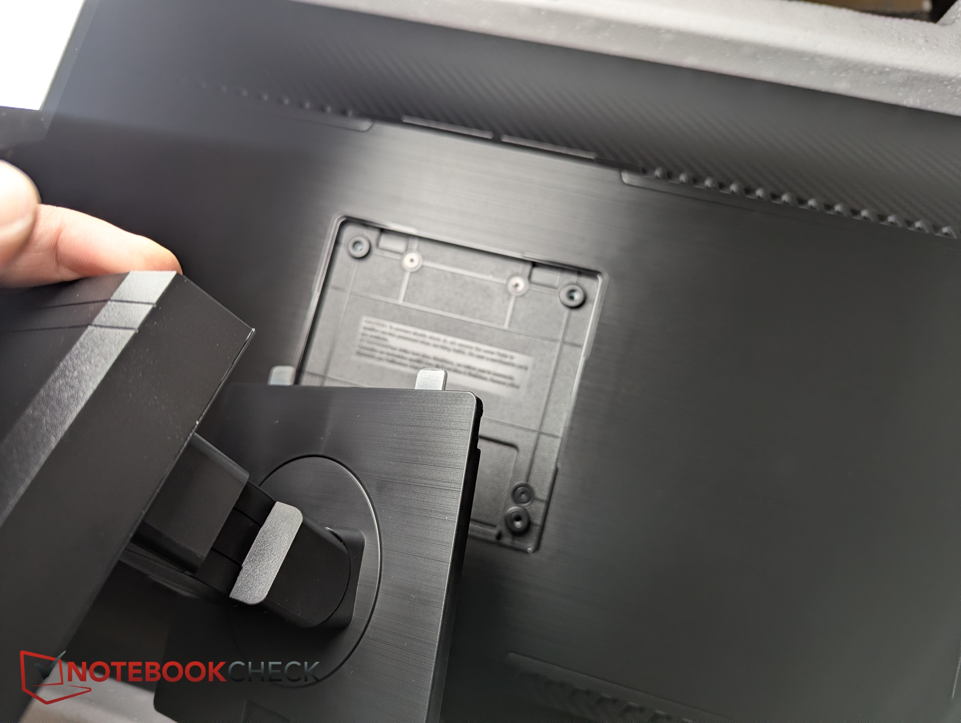 Montaż jest bardzo prosty. Podstawka zatrzaskuje się bezpośrednio w uchwycie VESA z tyłu monitora - nie są wymagane żadne śruby.