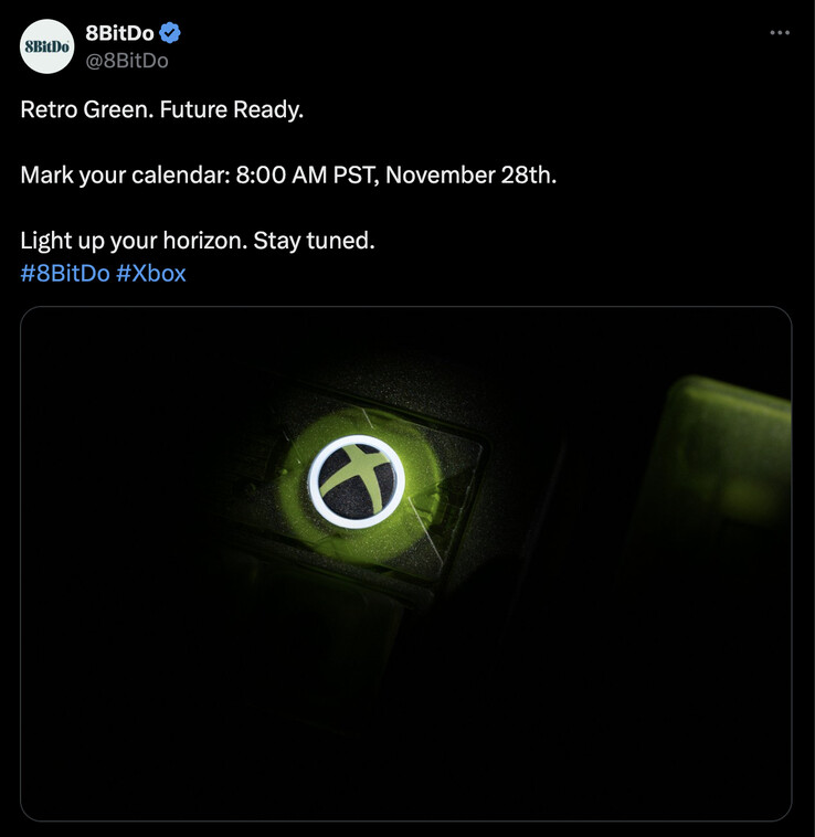Do tej pory 8BitDo opublikowało dwa tajemnicze teasery z towarzyszącymi im zdjęciami. O ile nam wiadomo, zdjęcia przedstawiają dwa urządzenia, a nie jedno. Zwiększenie jasności na obu sugeruje, że 8BitDo stworzyło zestaw klawiatury i myszy o tematyce Xbox, choć są to tylko spekulacje z naszej strony. Na szczęście 8BitDo ujawni więcej szczegółów na temat tego, co ma w zanadrzu 28 listopada o godzinie 16:00 UTC.