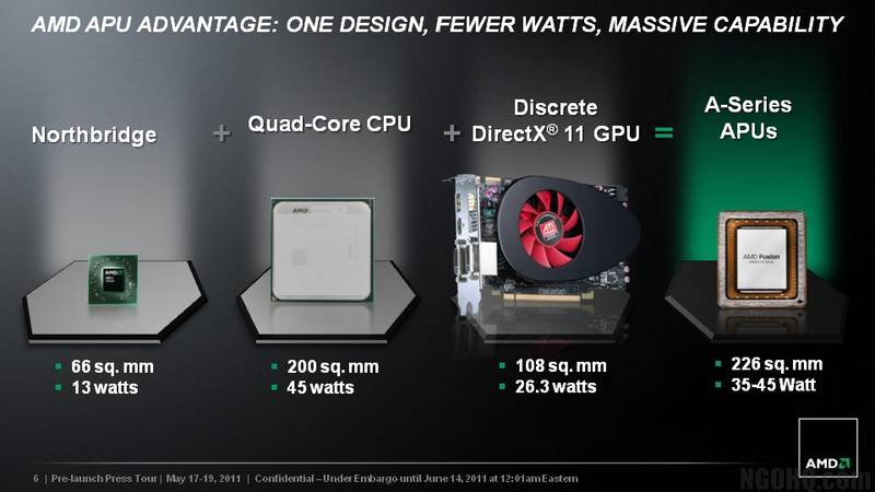 Wykonane w technologii 32 nm jednostki APU mają się cechować umiarkowanym zużyciem energii. W materiałach producenta można znaleźć porównanie, w którym sprzęt z procesorem AMD A8-3510MX wypada znacznie lepiej od notebooka z procesorem Intel Core i5-2410M (slajd w prawym dolnym rogu załączony u dołu strony).