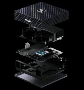 Powinno to umożliwić lokalne uruchamianie modeli z nawet 200 miliardami parametrów. AMD Ryzen AI Halo obsługuje zarówno system Windows 11, jak i Linux. AMD chłodzi potężny układ Strix Halo, który może zużywać ponad 180 watów mocy pod obciążeniem, za pomocą dwóch wentylatorów i dużego radiatora. Dyskretne otwory wentylacyjne są również obecne na większości obudowy, na której znajdują się dwa logo AMD. Mały pasek LED dodaje subtelnego akcentu do ogólnego projektu.