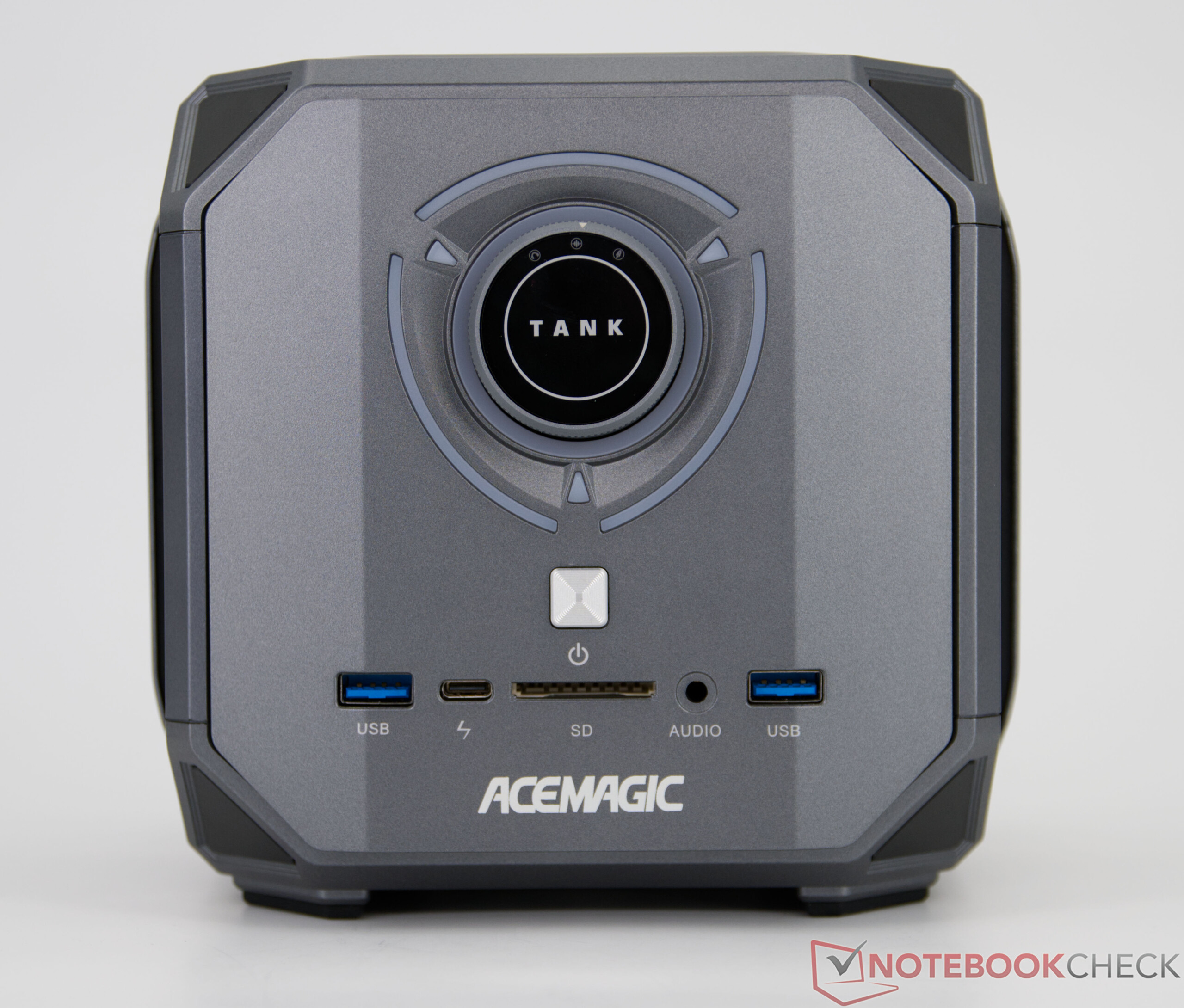 Podobnie jak poprzedni model, Acemagic Tank 03, Acemagic M1A Pro+ wykorzystuje ten sam projekt wizualny z kilkoma zmianami pod pokrywą boczną. Zachowano również charakterystyczny element sterujący z przodu: zintegrowany pokrętło może być używane do wygodnego przełączania między kilkoma trybami mocy (70 watów, 100 watów i 140 watów). Materiały i wykonanie są podobne do Tank 03, do którego odnosimy się w tym miejscu.