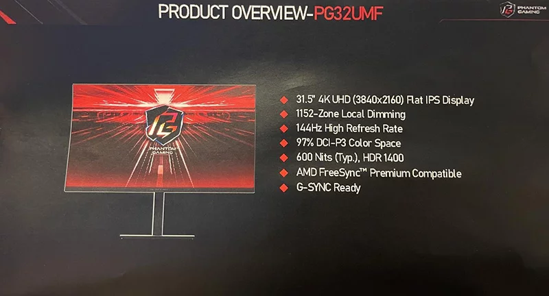 ASRock rzucił światło na PG32UMF, nadchodzący monitor do gier. Zaprezentowany na targach Computex 2023 wraz z monitorem PG558KFpG32UMF opiera się na 31,5-calowym panelu IPS z płaskim wykończeniem. Według ASRock, rozdzielczość panelu wynosi natywnie 4K (3840 x 2160) przy typowej szczytowej jasności 600 nitów. Monitor posiada jednak również certyfikat VESA DisplayHDR 1400, co oznacza, że w niektórych scenariuszach powinien być w stanie osiągnąć 1400 nitów.