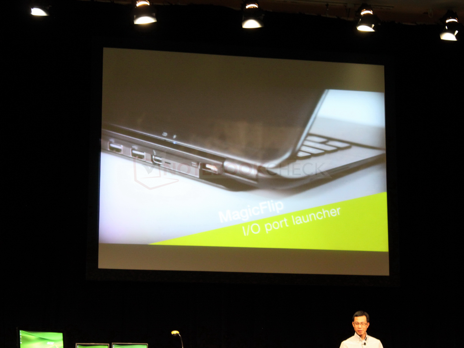 Sprytnie rozwiązano interfejsy zewnętrzne. Normalnie są one schowane w środku obudowy, a za naciśnięciem guzika wysuwają się ze spodu laptopa z tyłu jednostki zasadniczej. To dzięki temu rozwiązaniu ("MagicFlip I/O") Aspire S5 jest tak cienki. Żeby zobaczyć, jak to działa, warto obejrzeć ten filmik na YT.