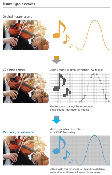 DAC zawiera przetwarzanie JVCKenwood K2HD do skalowania źródeł dźwięku niskiej jakości do 192 kHz, 24-bitowego sygnału wyjściowego, przy jednoczesnym przywracaniu utraconych harmonicznych. Zakres dynamiki Go Pod Max wynosi 129 dB przy 32 omach w zakresie od 20 Hz do 20 kHz.