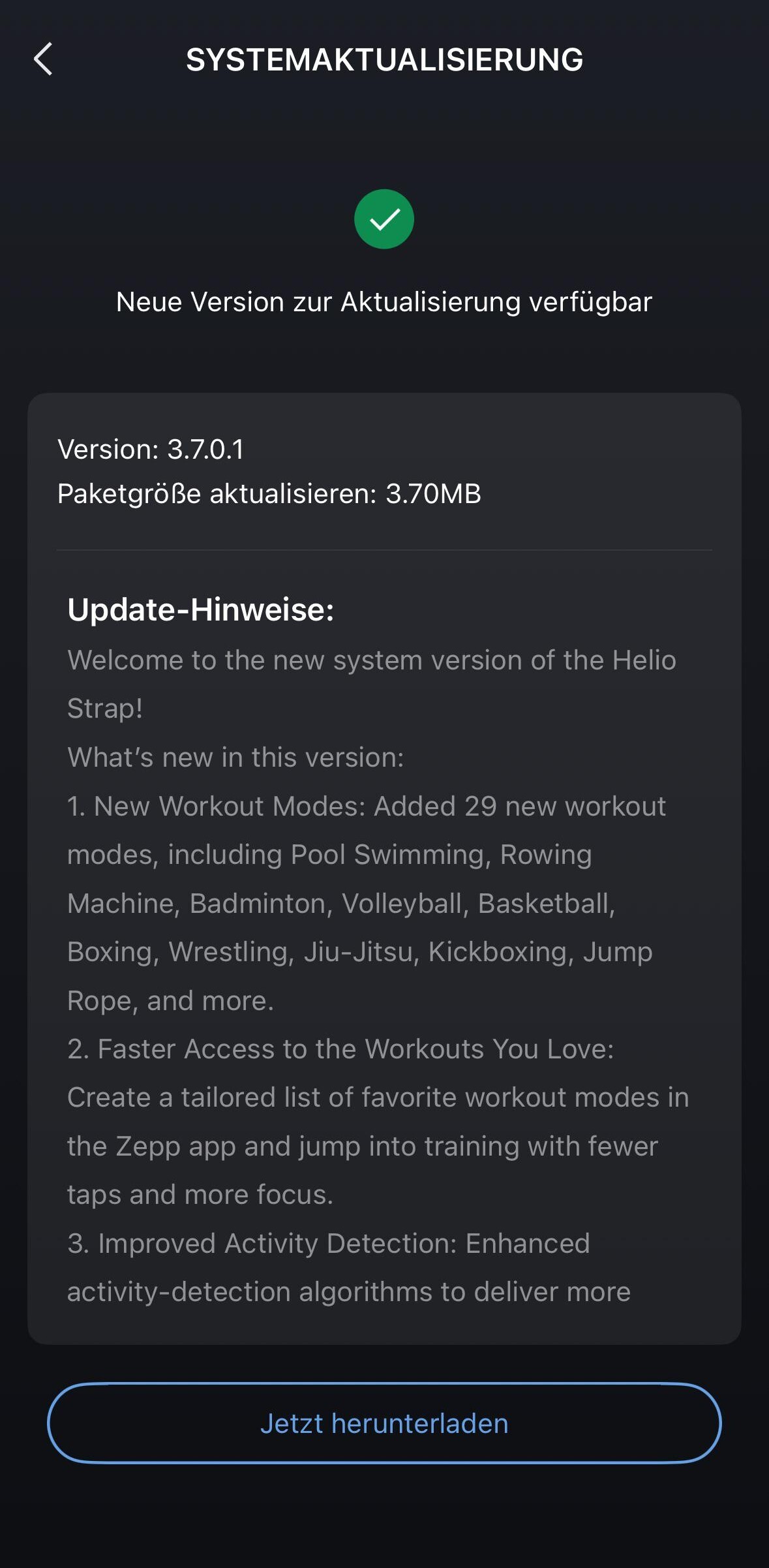 Ta wersja 3.7.0.1 wydaje się być wprowadzana etapami dla użytkowników paska Amazfit Helio Strap(obecnie 99,00 USD w Amazon). Dotarła już do niektórych użytkowników w krajach takich jak USA i Niemcy, choć nie jest jasne, kiedy będzie dostępna dla wszystkich. Jak zwykle, aktualizacja zostanie zainstalowana za pośrednictwem aplikacji Zepp na smartfony.