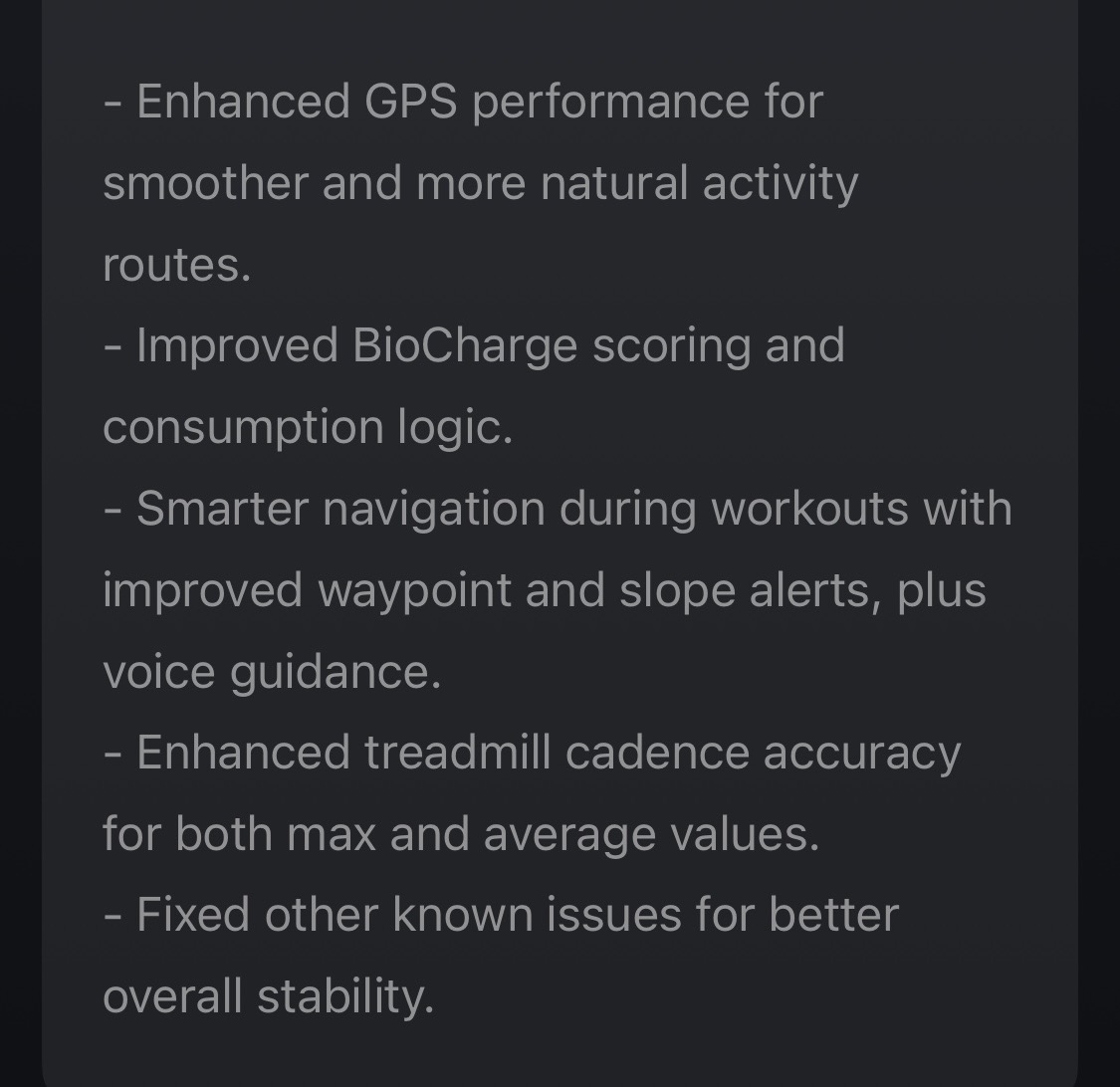 Amazfit Balance 2 XT zyskuje kolejny tryb treningowy, Ski Machine, umożliwiający śledzenie treningu narciarskiego. Inne dodatki obejmują zawsze włączone tarcze zegarka (AOD) oraz nowe integracje z TrainingPeaks i Intervals.icu w celu szybszej synchronizacji danych. Co więcej, firma wskazuje, że poprawiła wydajność GPS, zapewniając bardziej "naturalne" trasy dla różnych aktywności, a nawigacja podczas treningu ma być inteligentniejsza. Algorytm pomiaru BioCharge został zoptymalizowany, a dokładność maksymalnych i średnich wartości kadencji bieżni została poprawiona.