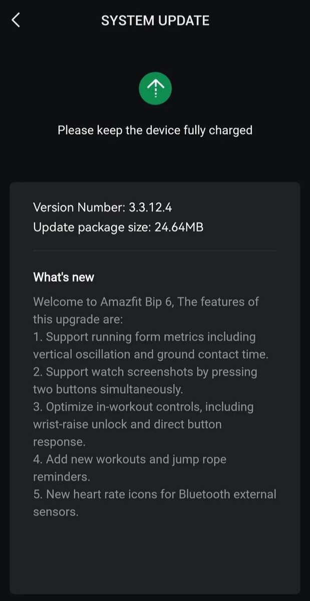 Oprogramowanie Amazfit Bip 6 w wersji 3.3.12.4 to aktualizacja o rozmiarze 24,64 MB. Wdrażana etapami, będzie dostępna do pobrania za pośrednictwem aplikacji Zepp dla wszystkich użytkowników w nadchodzących tygodniach.