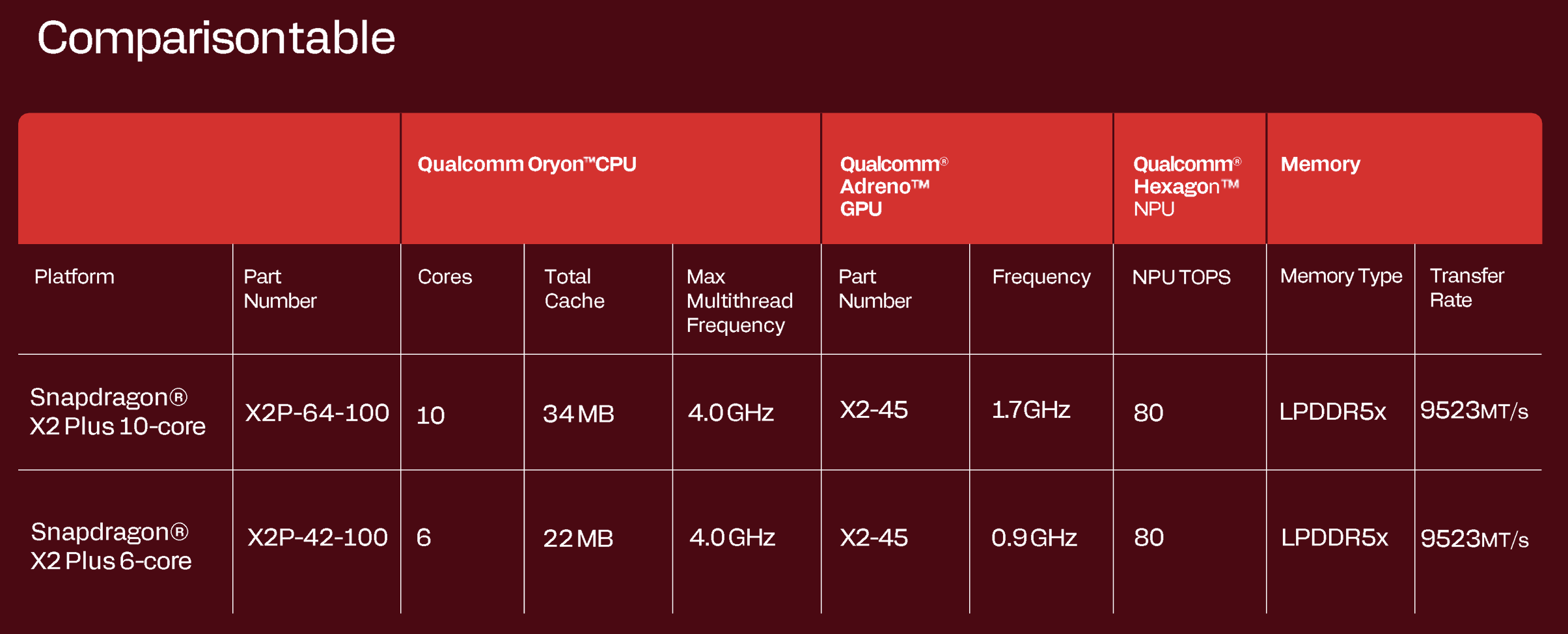 | Qualcomm Snapdragon X Plus X1P-42-100 | |