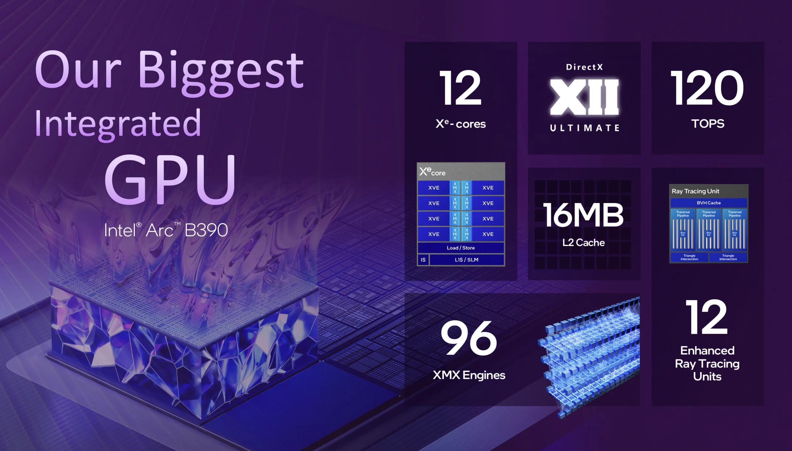 Nowy Arc B390 jest oparty na architekturze Xe3 i dlatego jest następcą modeli Xe2, takich jak Arc Graphics 140V mobilnych procesorów Lunar Lake. Układ graficzny Arc Graphics 140T z modeli Arrow Lake bazował na jeszcze starszej architekturze Xe.