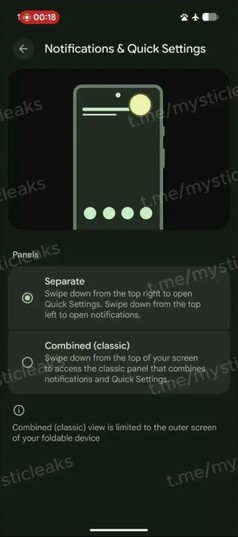 Zgodnie z tymi zrzutami ekranu, Android 17 będzie domyślnie wyświetlać szybkie ustawienia tylko po przesunięciu w dół z prawego górnego rogu ekranu. Z drugiej strony przesunięcie w dół od lewego górnego rogu ekranu spowoduje wyświetlenie powiadomień. Jest to już znane z Apple iPhone 17. Użytkownicy, którym nie podoba się ta zmiana, mogą powrócić do znanego interfejsu użytkownika Android w ustawieniach systemu, który łączy szybkie ustawienia i powiadomienia na jednym ekranie