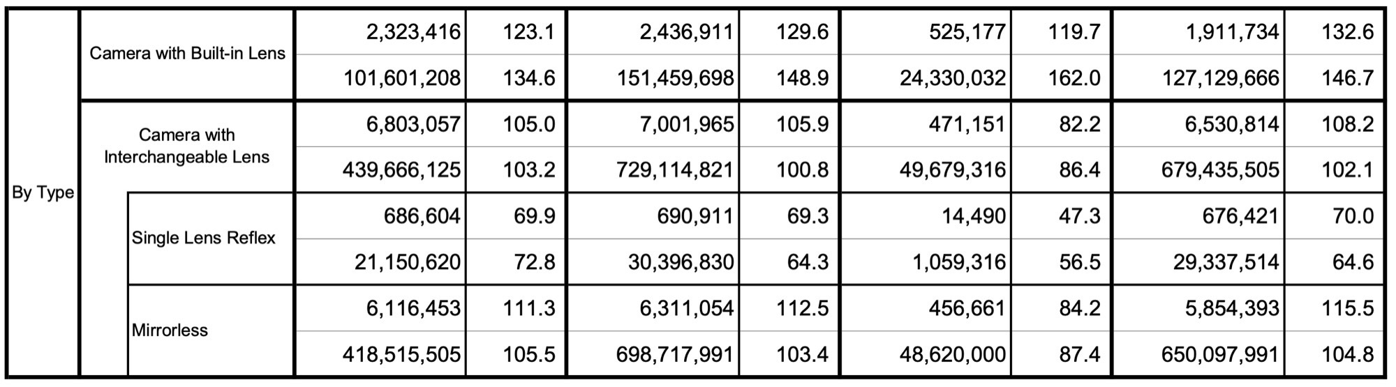W 2025 r. dostawy aparatów pełnoklatkowych wzrosły o 1,9% rok do roku, podczas gdy aparaty z wymiennymi obiektywami i mniejszymi matrycami odnotowały wzrost o 8,4%. Europa uplasowała się na trzecim miejscu z 2,11 mln sprzedanych aparatów, tuż za Chinami (2,26 mln) i Stanami Zjednoczonymi (2,34 mln). Sprzedaż wzrosła we wszystkich regionach. Globalna sprzedaż aparatów fotograficznych nie odnotowała dwóch kolejnych lat wzrostu od 2007 roku, choć pozostaje niepewne, czy trend ten utrzyma się w 2026 roku, biorąc pod uwagę trudny klimat gospodarczy i trwający kryzys DRAM