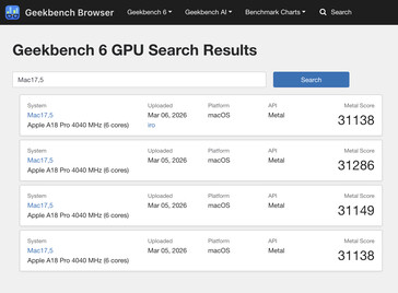 Z jednej strony, wydajność GPU wydaje się nieznacznie wyprzedzać MacBooka Air z procesorem M1, którego recenzowaliśmy w 2020 roku. W tamtym czasie urządzenie to uzyskało średnio 30 112 w teście porównawczym Geekbench 6.5 Metal. Tymczasem MacBook Neo zwraca 31 178 z testów porównawczych, które zostały do tej pory wymienione. Wynik ten jest o około 5,7% niższy niż w przypadku iPhone 16 Pro Max pomimo posiadania o 16,6% mniej rdzeni GPU.