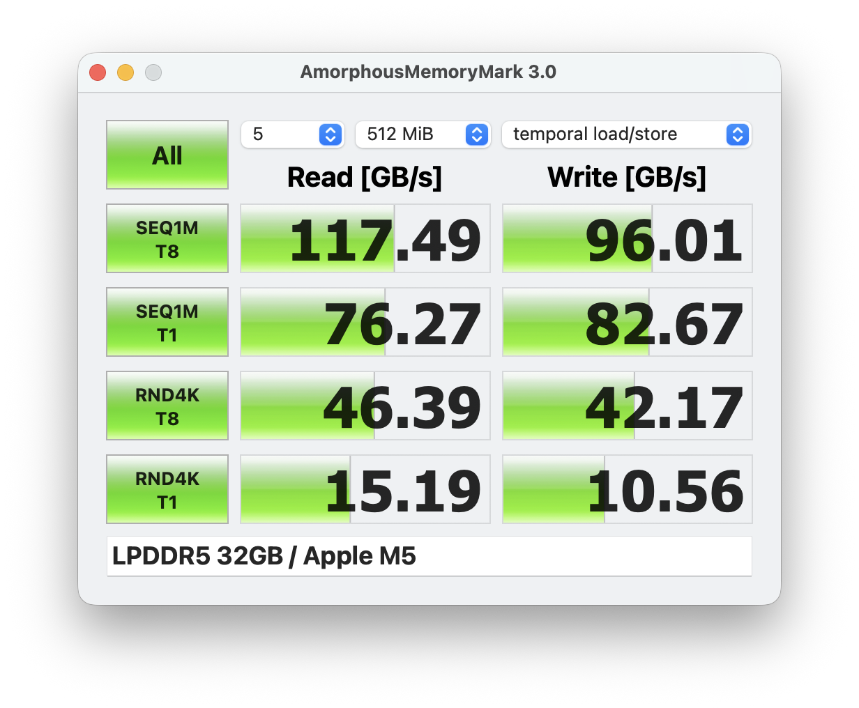| Przeciętny Apple M5 10-Core (199 - 200, n=3) | |