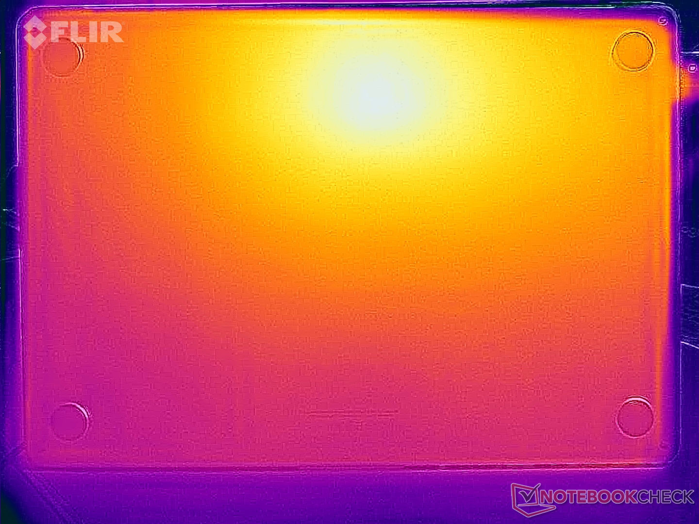 Wydajność procesora nowego Apple M5 (4 super rdzenie, 6 rdzeni wydajnościowych) jest bardzo imponująca i jest to najszybszy jednordzeniowy procesor, jaki można kupić z dość dużym marginesem. Wydajność wielordzeniowa jest również bardzo dobra, chociaż system musi dość szybko zmniejszyć limit mocy. Deficyt w porównaniu do MacBooka Pro 14 M5 z aktywnym chłodzeniem nadal wynosi tylko 18% podczas testu Cinebench 2024 Multi, który trwa kilka minut. Po teście obciążeniowym CB24 Multi (30 minut), wynik jest nadal tylko o ~10% niższy.