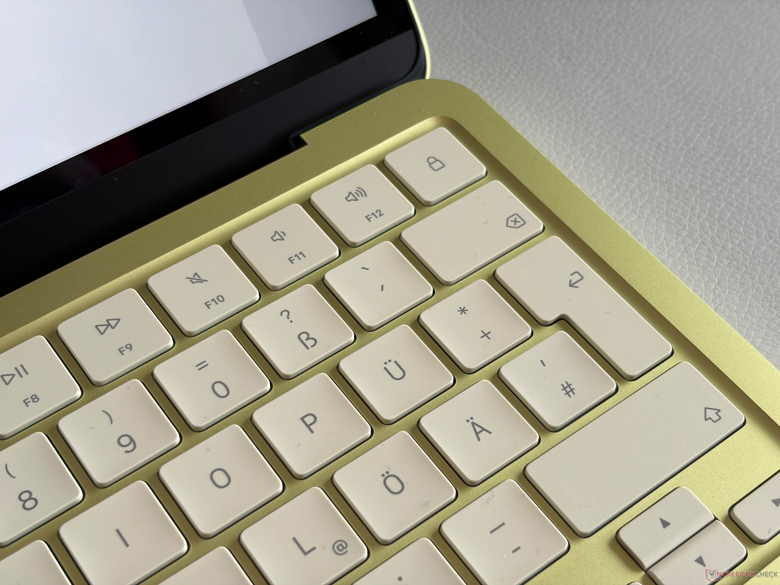 Łączność jest jednym z obszarów, w którym można zauważyć niską cenę. Apple zawiera tylko dwa porty USB-C, a jeden z nich jest ograniczony do starego standardu USB 2.0. Można go przynajmniej używać do ładowania, więc nie jest całkowicie bezużyteczny. Tylny port USB-C (3.2 Gen. 2) może być użyty do podłączenia zewnętrznego ekranu, a Neo obsługuje jeden zewnętrzny ekran w rozdzielczości do 4K (60 Hz) oprócz ekranu wewnętrznego. Wypróbowaliśmy go z naszą zwykłą konfiguracją biurkową i działał dobrze z naszym ekranem przez USB-C (ładowanie i korzystanie z głośników, a także urządzeń wejściowych, które są bezpośrednio podłączone do ekranu). Dwa porty USB-C znajdują się po lewej stronie z tyłu, podczas gdy gniazdo stereo 3,5 mm jest umieszczone bardziej z przodu.
