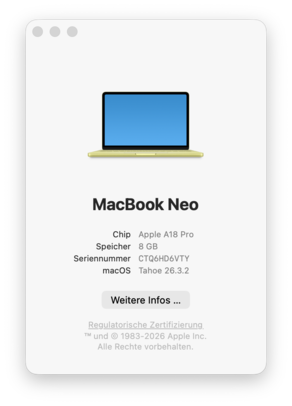 Pod względem wydajności, procesor smartfona A18 Pro jest zaskakująco mocny i oferuje większą wydajność jednordzeniową, jak i graficzną w porównaniu do podstawowych procesorów Snapdragon-X-CPU firmy Qualcomm, tylko wydajność wielordzeniowa jest niższa. Niemniej jednak, nadal jest ona wystarczająca do codziennych zadań, a ogólne wrażenia z użytkowania są szybkie. Oczywiście, ciężka wielozadaniowość będzie problemem, a także bardzo szybko zapełni 8 GB pamięci RAM, ale i tak nie jest to docelowy scenariusz dla MacBooka Neo. A jeśli zachowasz lekkość i będziesz korzystać głównie z natywnych aplikacji Apple, będzie to bardzo szybki i cichy codzienny towarzysz. Chociaż ani pamięć, ani dysk SSD nie mogą być aktualizowane, naprawialność komponentów jest całkiem dobra (bez kleju, wszystkie części są dostępne).