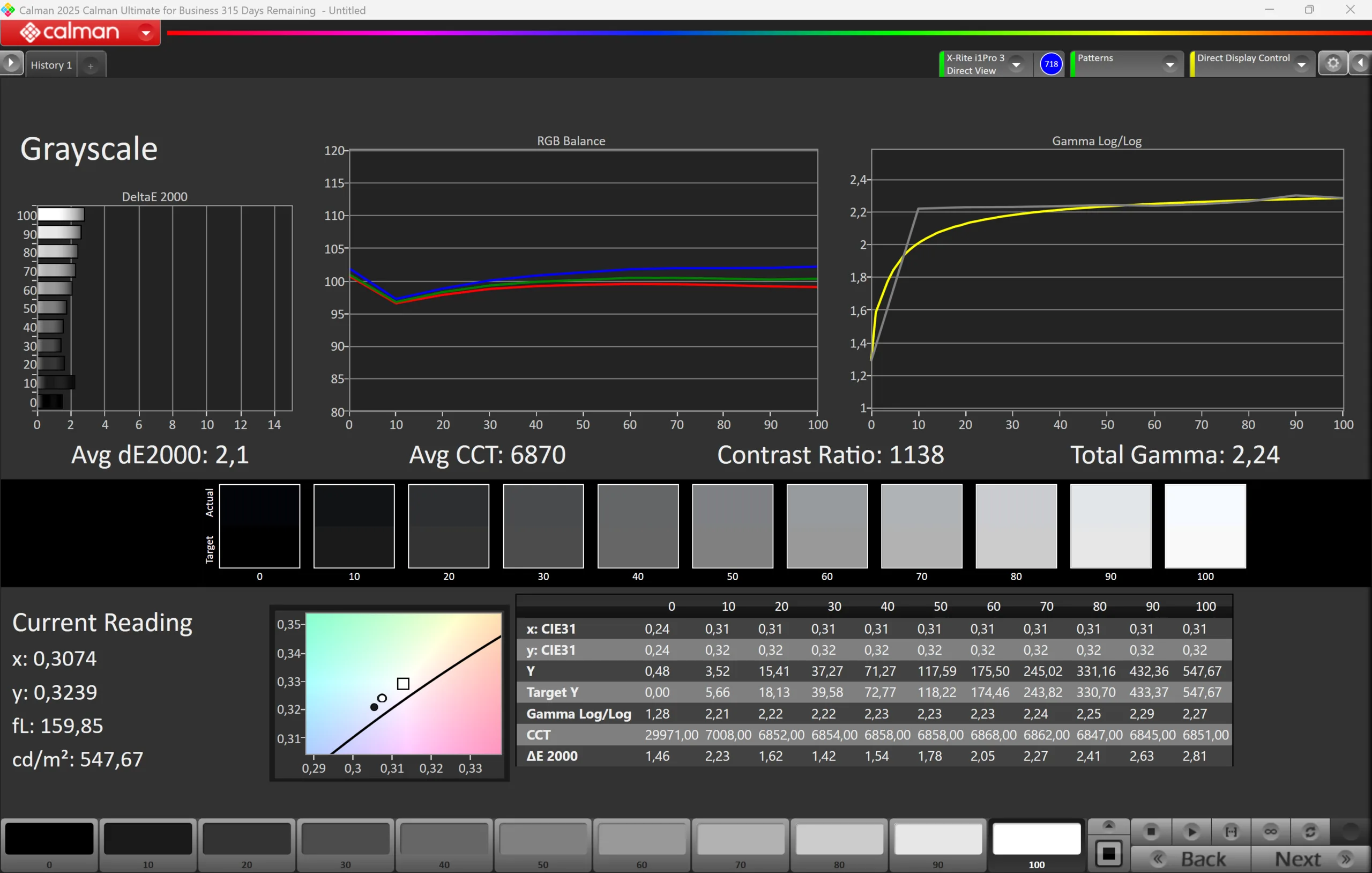 ΔE Greyscale Calman: 2.1 | ∀{0.09-98 Ø5}