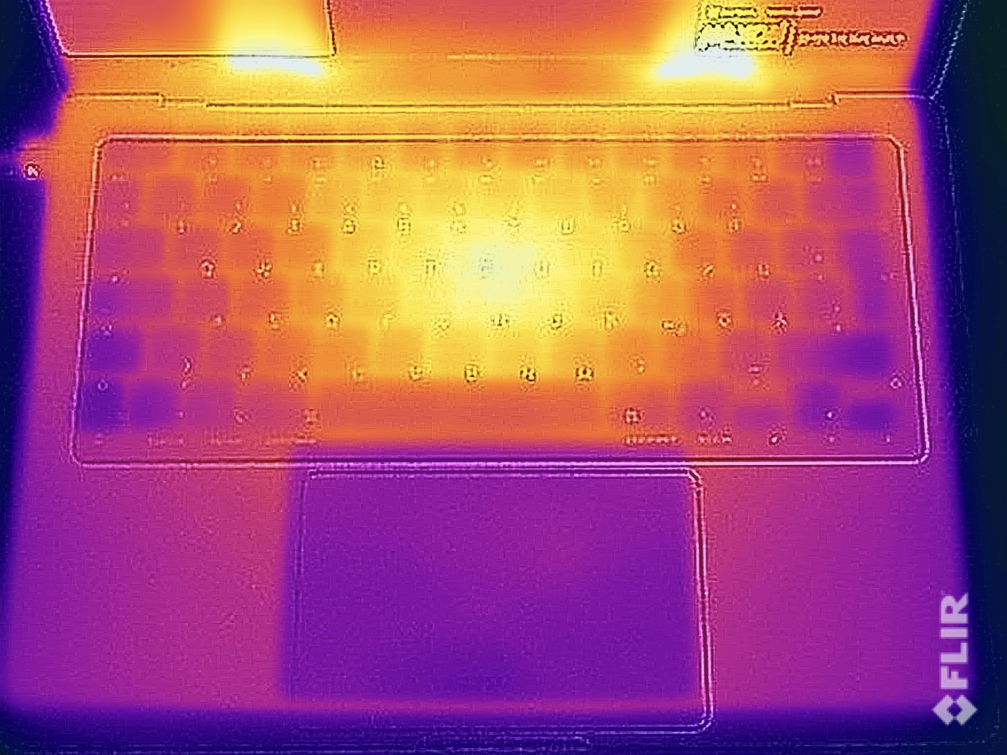 Metalowa obudowa praktycznie w ogóle nie nagrzewa się na biegu jałowym i pod niewielkim obciążeniem. Pod obciążeniem pozostaje jednak fakt, że szczególnie centralny obszar klawiatury nagrzewa się bardzo mocno do ponad 45°C i jest to odczuwalne np. podczas grania (temperatury są tu porównywalne z testem obciążeniowym). Od spodu metalowa obudowa jest wyraźnie chłodniejsza i ma nieco ponad 40°C, a MBP 14 można bez obaw położyć na kolanach pod obciążeniem.