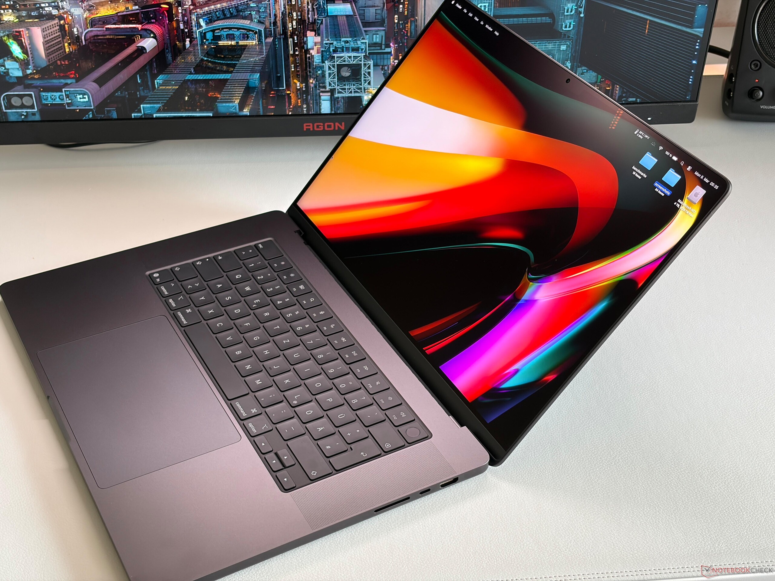 Po nieco wyższym zużyciu energii w trybie bezczynności, możemy również zaobserwować niewielki spadek czasu pracy na baterii. W naszym teście Wi-Fi przy 150 nitach, czas pracy wynosi teraz 18,5 godziny, czyli o godzinę krócej w porównaniu do poprzedniego modelu. Wynik jest jednak nadal doskonały i wyraźnie lepszy od większości alternatyw dla systemu Windows, tylko Samsung Galaxy Book6 Ultra może nadążyć pomimo znacznie mniejszej baterii. Przy pełnej jasności wyświetlacza wynik jest ponownie niższy niż poprzednio i wynosi 6,6 vs 7,3 godziny, podczas gdy Galaxy Book6 Ultra wyraźnie wyprzedza 8,4 godziny (ale przy niższej jasności 500 vs ~ 630 nitów na MBP 16).