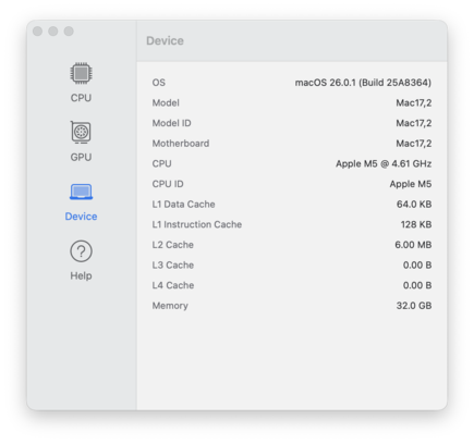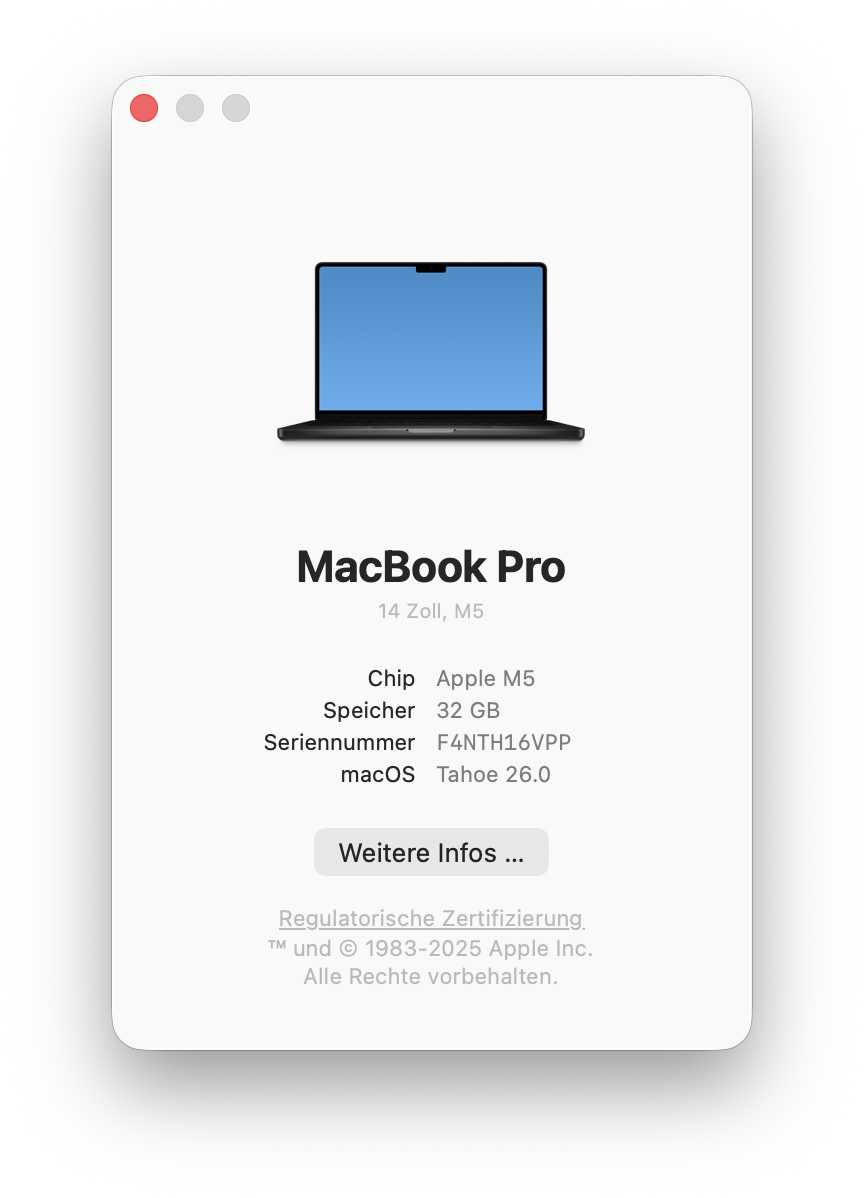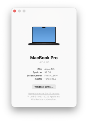 Nowy SoC M5 jest nadal produkowany w procesie technologicznym 3 nm i ponownie zawiera 10 rdzeni. Cztery z nich to szybkie rdzenie wydajnościowe, które osiągają do 4,608 GHz, a sześć to rdzenie wydajnościowe o maksymalnym taktowaniu 3,048 GHz. Procesor może zużywać maksymalnie 30,5 wata, a następnie szybko osiąga 27,5 wata. Aby uzyskać bardziej szczegółowe informacje i wartości wydajności, proszę odnieść się do nasz artykuł analityczny na temat nowego Apple M5.