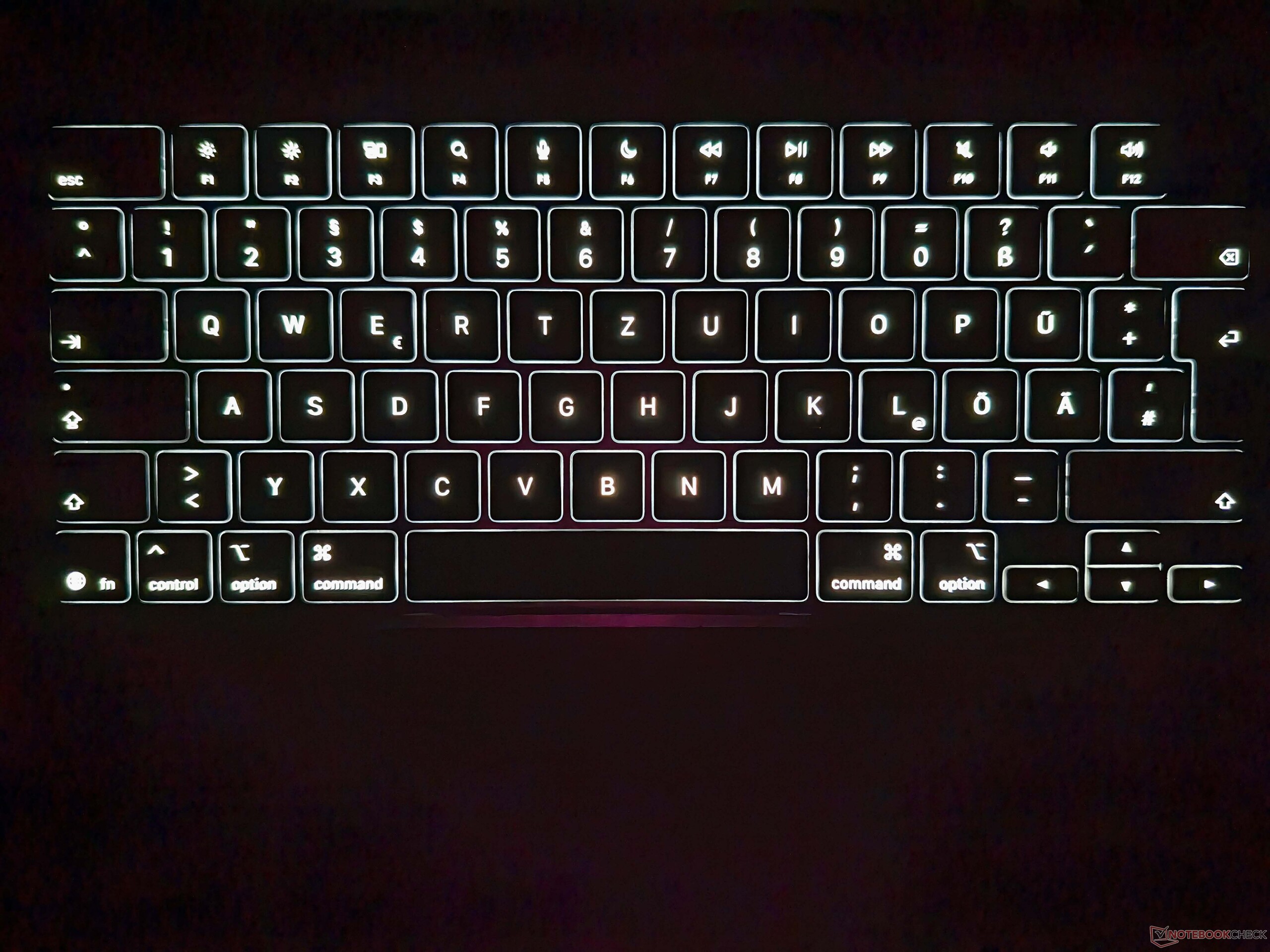 Apple nadal opiera się na znanym panelu Mini LED. Kupujący mogą również wybrać wersję matową (+ 150 USD), którą mieliśmy do dyspozycji podczas naszego testu. Matowa powierzchnia minimalnie pogarsza jakość obrazu, a kolory nie są tak jaskrawe, ale z kolei można pracować w jasnym otoczeniu bez konieczności zmagania się z irytującymi odbiciami. Podświetlenie Mini LED migocze stale z bardzo wysoką częstotliwością wynoszącą nieco poniżej 15 kHz, więc wrażliwi użytkownicy nie powinni mieć żadnych problemów. Niestety, ze względu na to migotanie, nie mogliśmy dokładnie określić czasu reakcji ekranu, więc nasze wyniki pomiarów mają ograniczone znaczenie. Wraz z częstotliwością odświeżania 120 Hz, nie ma żadnych problemów z widocznym smużeniem.