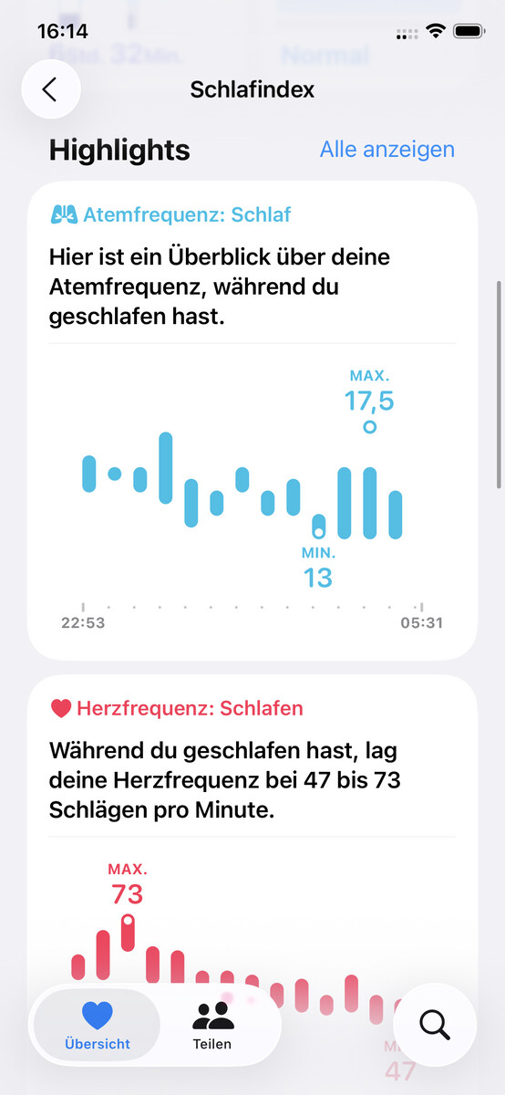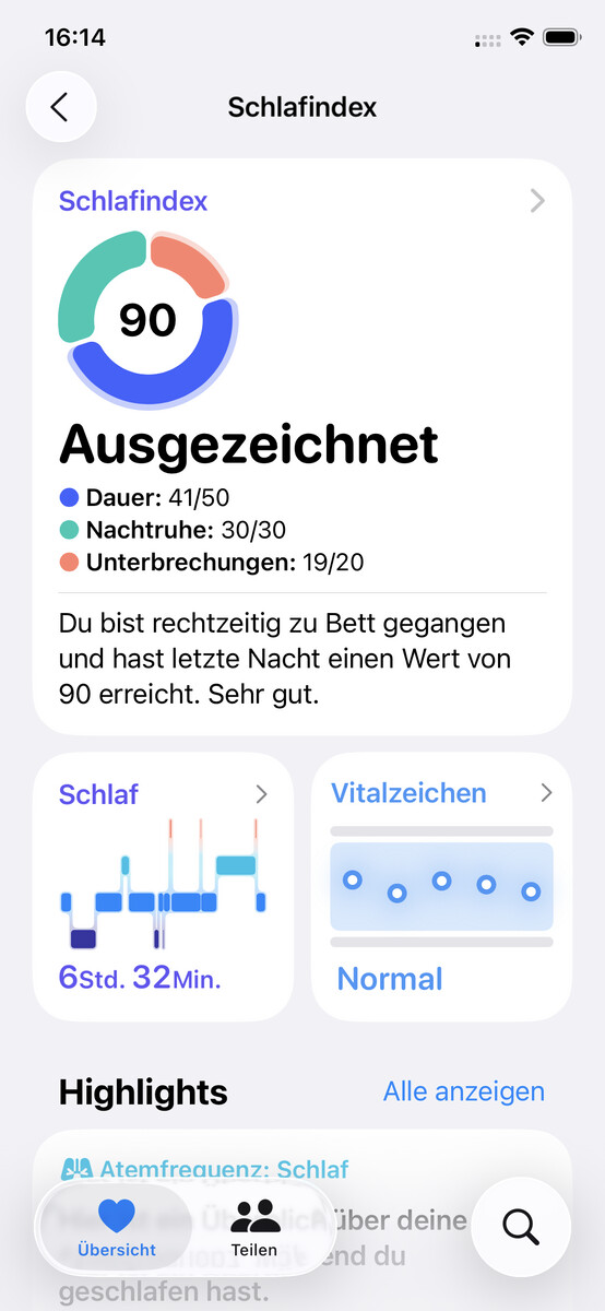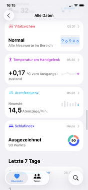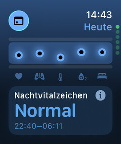 Zegarek Apple Watch Series 11 umożliwia kompleksowe śledzenie snu. Oprogramowanie dzieli poszczególne etapy snu i przypisuje ogólny wynik snu. Rejestruje również kilka ważnych wskaźników w ciągu nocy, w tym częstość oddechów i temperaturę skóry.