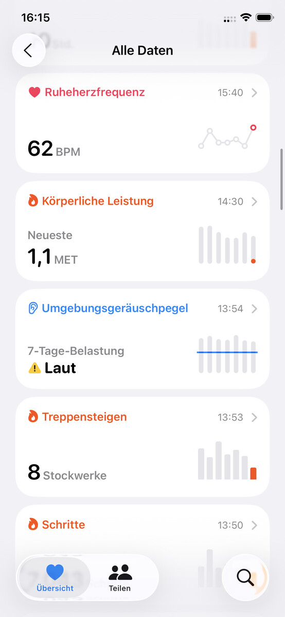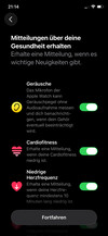 Wszystkie dane dotyczące zdrowia są skonsolidowane w aplikacji AppleZdrowie, podczas gdy oddzielna aplikacja Fitness koncentruje się na treningach i codziennym śledzeniu aktywności. Jedną z wyróżniających się funkcji zegarka Apple jest jego zdolność do monitorowania poziomu hałasu w otoczeniu - wysyła nawet powiadomienia push, gdy dźwięk wokół użytkownika staje się potencjalnie szkodliwy w miarę upływu czasu.