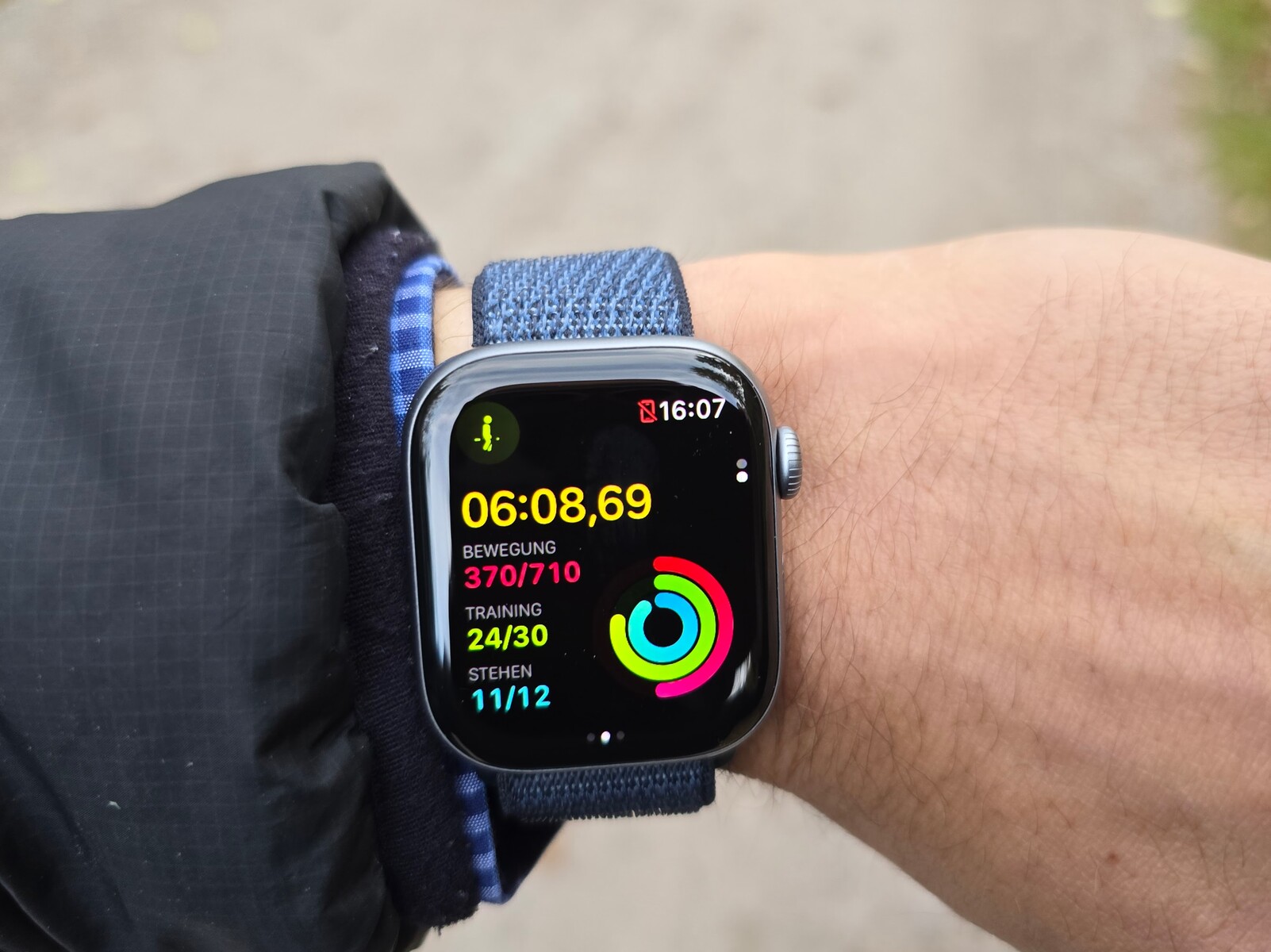 Treści na ekranie Watch 11 są wyraźne i żywe. Dzięki inteligentnemu wykorzystaniu ciemnego tła przez Apple, krawędzie wyświetlacza są ledwo zauważalne. Doceniliśmy również konfigurowalny, zawsze włączony wyświetlacz i niezawodną aktywację poprzez podniesienie nadgarstka.