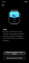 Dane treningowe można przeglądać bezpośrednio na zegarku lub w aplikacji towarzyszącej na iPhonie. Czytelność podczas ćwiczeń jest doskonała, nawet w jasnych warunkach. Watch 11 odziedziczył również głębokościomierz z modelu Watch Ultraktóry aktywuje się automatycznie, gdy zegarek jest zanurzony.