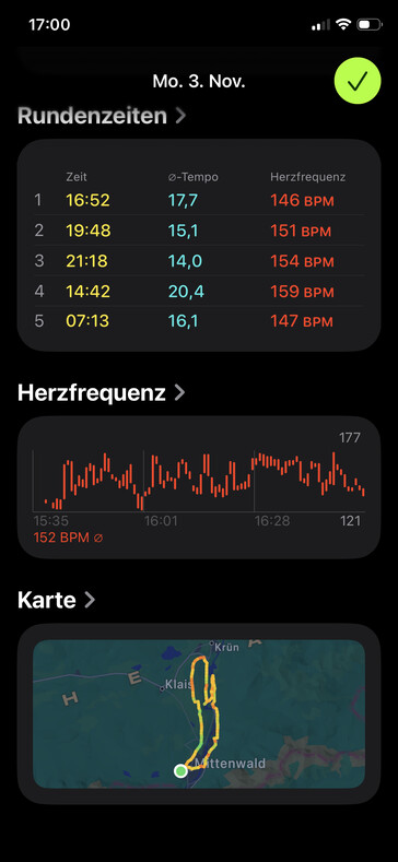 Zmierzyliśmy również tętno podczas aktywności w trzech różnych momentach. Średnio odchylenie wynosiło tylko 0,4 procent, a największa pojedyncza rozbieżność wynosiła dwa uderzenia na minutę; dwa z trzech pomiarów były identyczne. (Przygotowaliśmy opracowaliśmy szczegółowy przegląd dokładności pomiarów smartwatcha osobno)