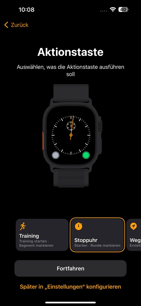 Po włączeniu Apple Watch Ultra 2 na pobliskim iPhonie automatycznie pojawia się wyskakujące okienko. Aby sparować, wyświetlacz smartwatcha jest skanowany za pomocą kamery iPhone'a. Następnie można załadować smartwatch danymi z poprzednich modeli lub skonfigurować go jako nowy zegarek. Można również skonfigurować zegarek dla członków rodziny.
