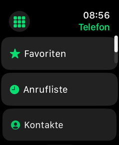 Aplikacja telefonu oferuje dostęp do list połączeń, wszystkich kontaktów sparowanego smartfona i skrzynki pocztowej. Dostępna jest również klawiatura numeryczna do ręcznego wprowadzania danych. Aplikacja Walkie-Talkie umożliwia wykonywanie połączeń bezpośrednio z Apple Watch na Apple Watch.
