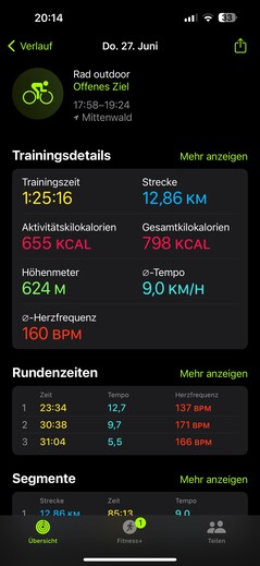 Apple Watch Ultra 2 obsługuje wszystkie popularne dwuzakresowe systemy satelitarne. Aby przetestować jego dokładność, zabraliśmy zegarek Apple na przejażdżkę rowerową z Garmin Venu 2. Zapis Ultra 2 jest imponujący: trasa odpowiada wskazówkom trasy, a promienie są również niezawodnie wykrywane.
