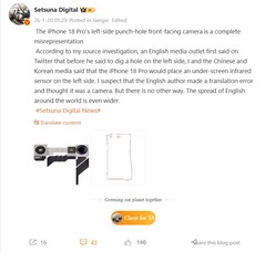 Nie zdarza się to często, ale w tym przypadku przecieki dotyczące iPhone'a 18 Pro najwyraźniej opierały się na mniej lub bardziej prostym błędzie w tłumaczeniu. Zaowocowało to dużą liczbą renderowanych obrazów, a nawet filmem od znanego leakstera, który zilustrował, jak może wyglądać przód iPhone'a 18 Pro i iPhone'a 18 Pro Max. Zdjęcia te wyobrażały dziurkę w lewym górnym rogu zamiast szerokiej Dynamicznej Wyspy na środku wyświetlacza.