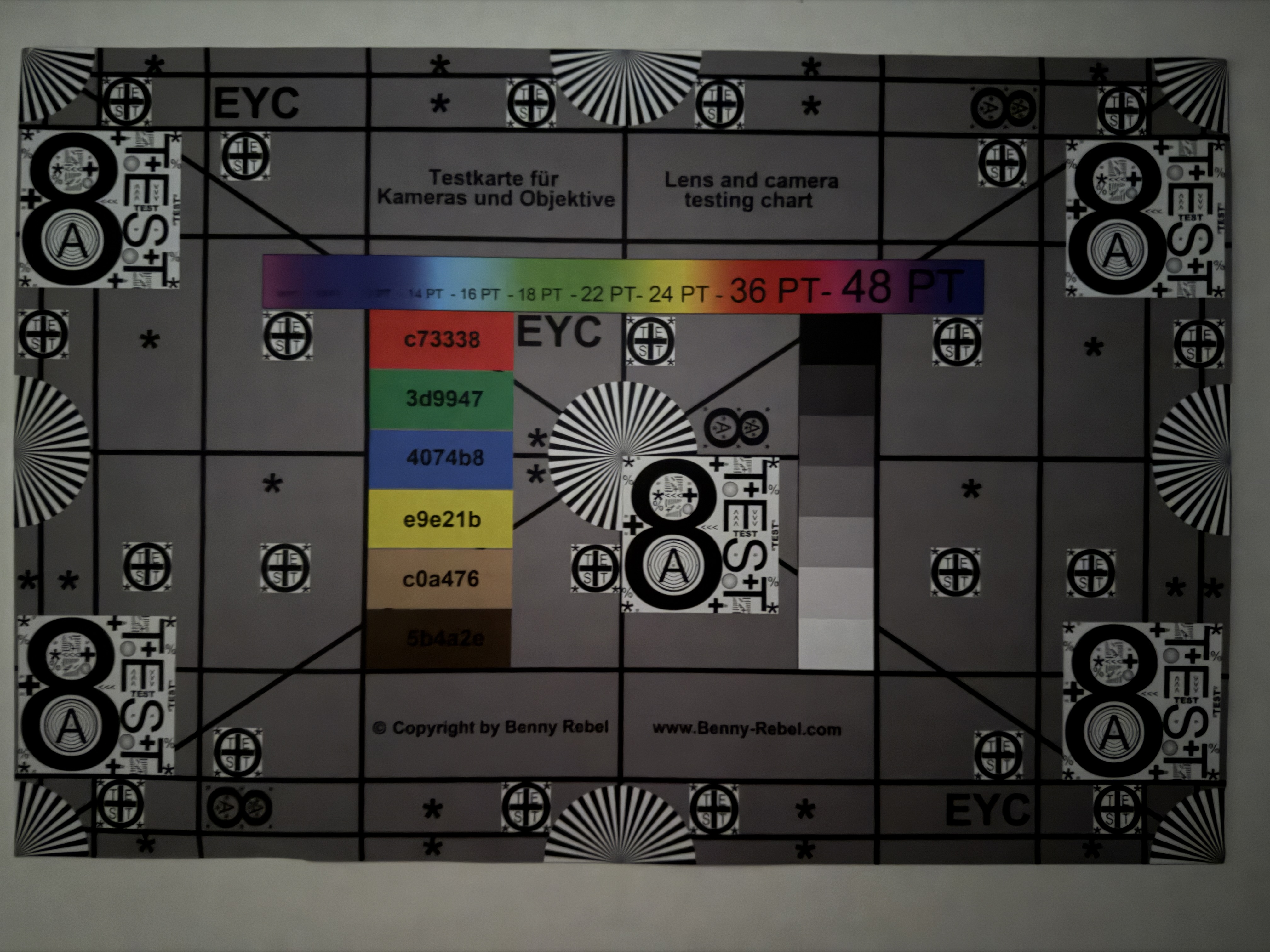 Main cameraMain cameraUltra-wide angle5x zoomLow lightW kontrolowanych warunkach oświetleniowych, nasz wykres testowy był prawie niezmiennie ostry, z prawie żadnym rozmyciem nawet na krawędziach. Jednak w centrum obrazu szczegóły wydawały się nieco wyostrzone i wykazywały niewielkie aberracje.