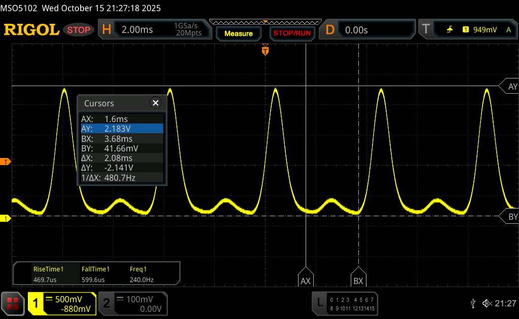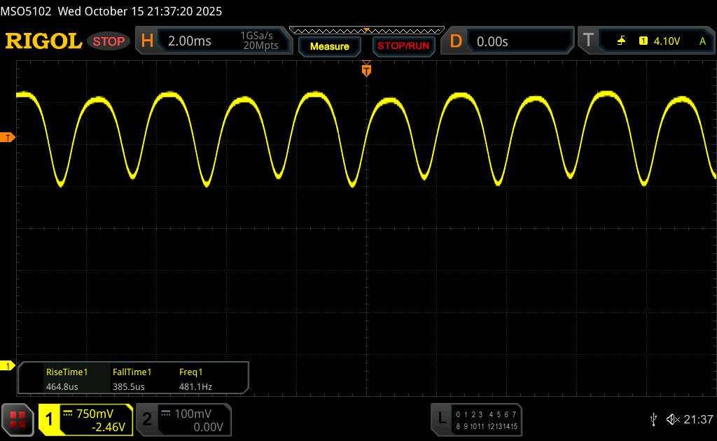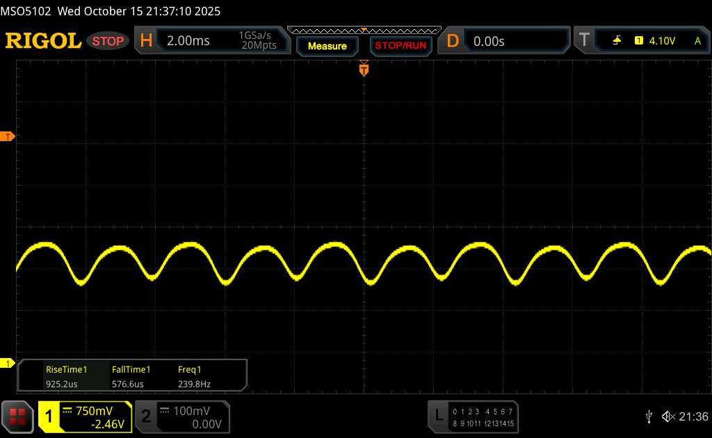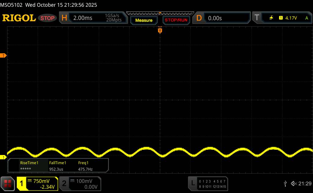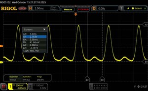 (+) | wzloty są liniowe (1.4% delta do poprzedniej częstotliwości)