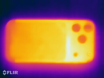 Temperatura powierzchni iPhone'a 17 Pro pozostawała bezpieczna przez cały czas, tylko sporadycznie wzrastając powyżej 40°C podczas testów obciążeniowych.