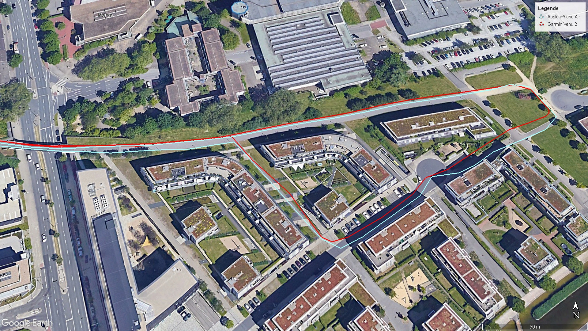 IPhone Air określa swoją pozycję za pomocą dwuzakresowego GNSS ze wszystkimi głównymi sieciami satelitarnymi. Śledzenie lokalizacji jest dość szybkie, ale podczas rzeczywistych testów na przejażdżce rowerowej okazało się, że smartfon pobierał swoją lokalizację w dłuższych odstępach czasu, co oznaczało, że śledzenie trasy nie zawsze było dokładne. Jest to jednak nadal całkowicie wystarczające do celów nawigacyjnych.