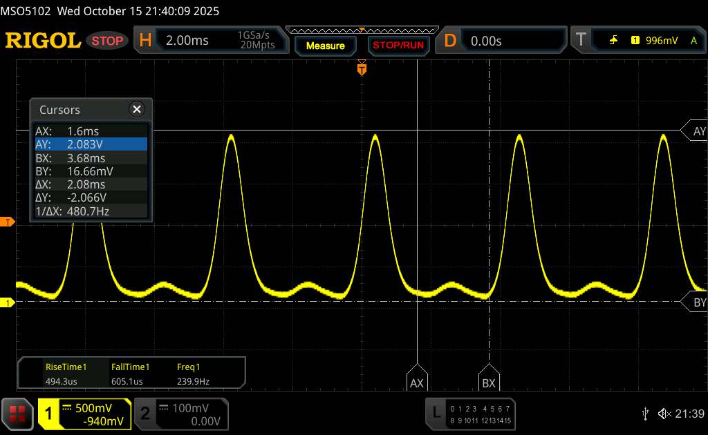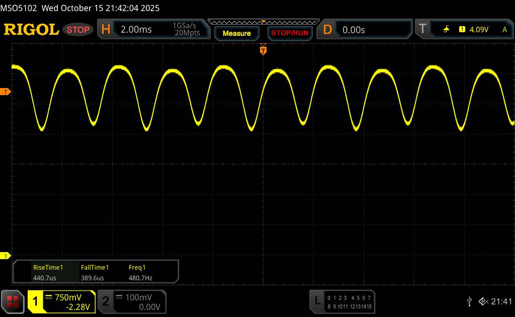 (+) | wzloty są liniowe (4.1% delta do poprzedniej częstotliwości)