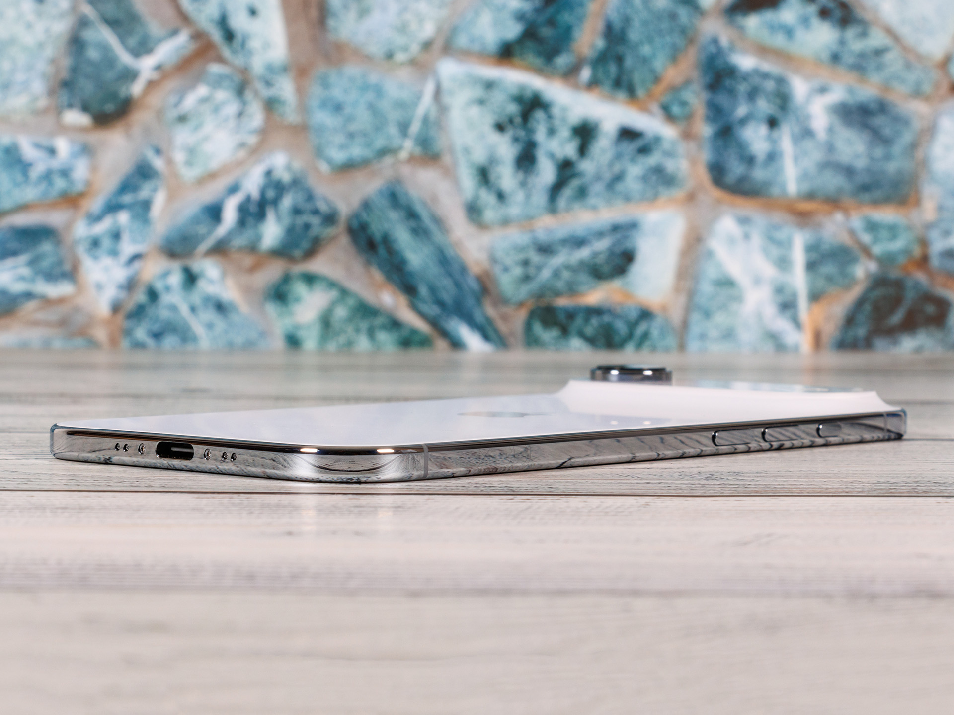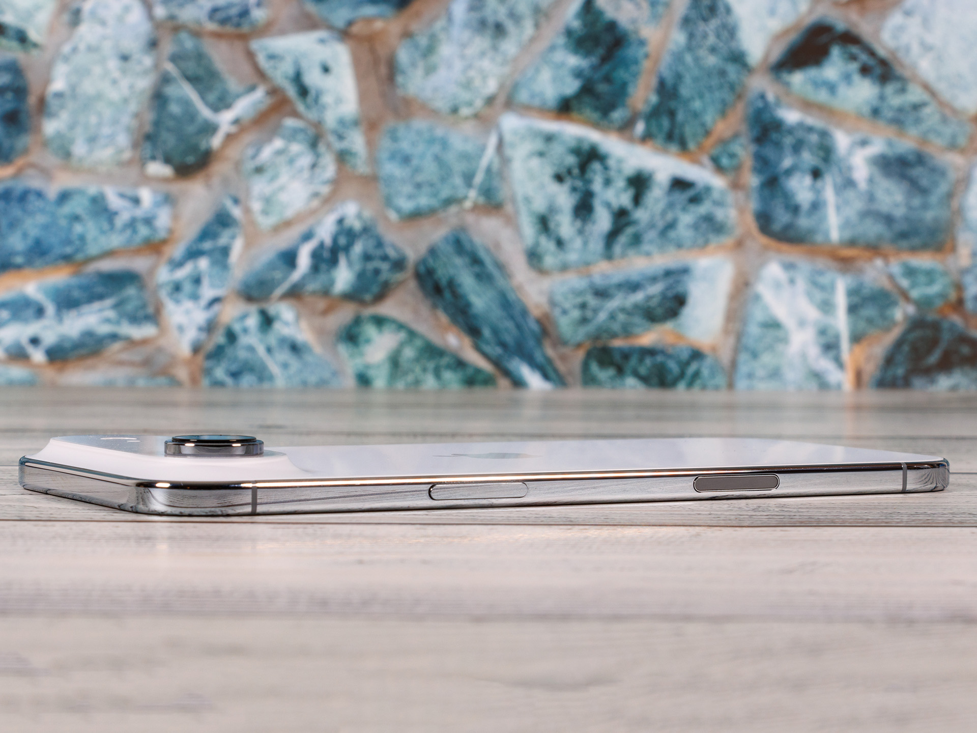 IPhone Air charakteryzuje się smukłą konstrukcją, co czyni go Apple najcieńszym smartfonem do tej pory. Jego nominalna grubość wynosi 5,64 mm, co możemy potwierdzić na podstawie naszych pomiarów. Proszę dodać do tego znaczną wypukłość (+2,96 mm) i kamerę zamontowaną na górze (dodatkowe +2,7 mm), co daje grubość 11,3 mm w najgrubszym miejscu. Ważący 165 g iPhone Air jest jednak stosunkowo lekki.