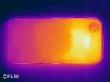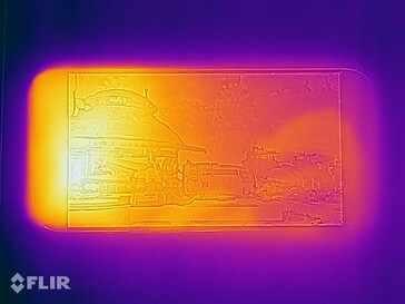 (±) Maksymalna temperatura w górnej części wynosi 41.5 °C / 107 F, w porównaniu do średniej 35.2 °C / 95 F , począwszy od 21.9 do 247 °C dla klasy Smartphone.