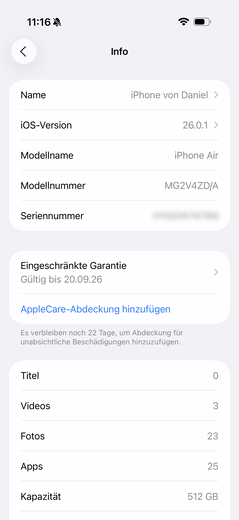 Pomimo bardzo małej baterii, iPhone Air działa zaskakująco długo, co powinno wystarczyć na cały dzień umiarkowanego użytkowania. Jeśli tak nie jest, nie powinni Państwo oddalać się zbytnio od najbliższego źródła zasilania.