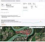 Aby zapewnić bardziej precyzyjną ocenę dokładności pozycjonowania, przeprowadziliśmy przejażdżkę rowerową przy użyciu telefonu Apple wraz ze smartwatchem Garmin Venu 2 jako urządzeniem porównawczym. Poza drobnymi problemami w wyjątkowo wąskich alejkach z wysokimi budynkami, śledzenie ścieżki było bardzo dokładne.