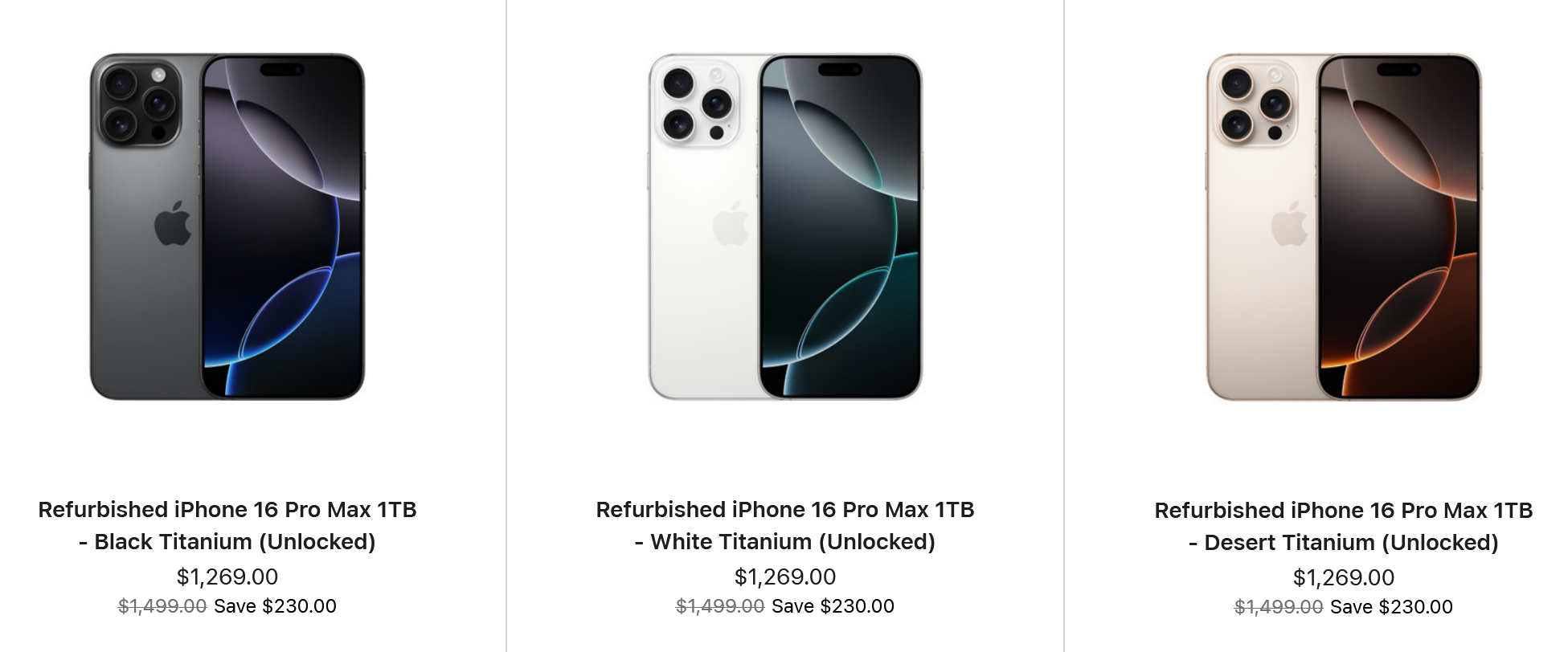 Niektóre z tych modeli można znaleźć taniej jako odnowione urządzenia w innych miejscach. Na przykład, iPhone'a 16 w "doskonałym" stanie z 128 GB pamięci masowej można kupić na Black Market za 574 USDczyli o 45 USD taniej niż odnowiony odpowiednik Apple
