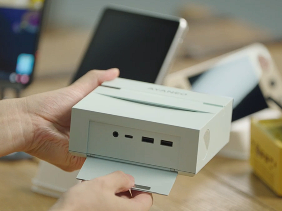 Jak pokazuje poniższy tweet, Ayaneo twierdzi, że "bardziej ekscytujące" informacje na temat AM03 "pojawią się wkrótce". Niestety, firma na razie udostępnia jedynie zdjęcia mini-PC. Niemniej jednak, wygląd urządzenia w okresie letnim potwierdza, że jego "pomysłowa" obudowa ukrywa przednie złącza USB typu A, typu C i 3,5 mm.