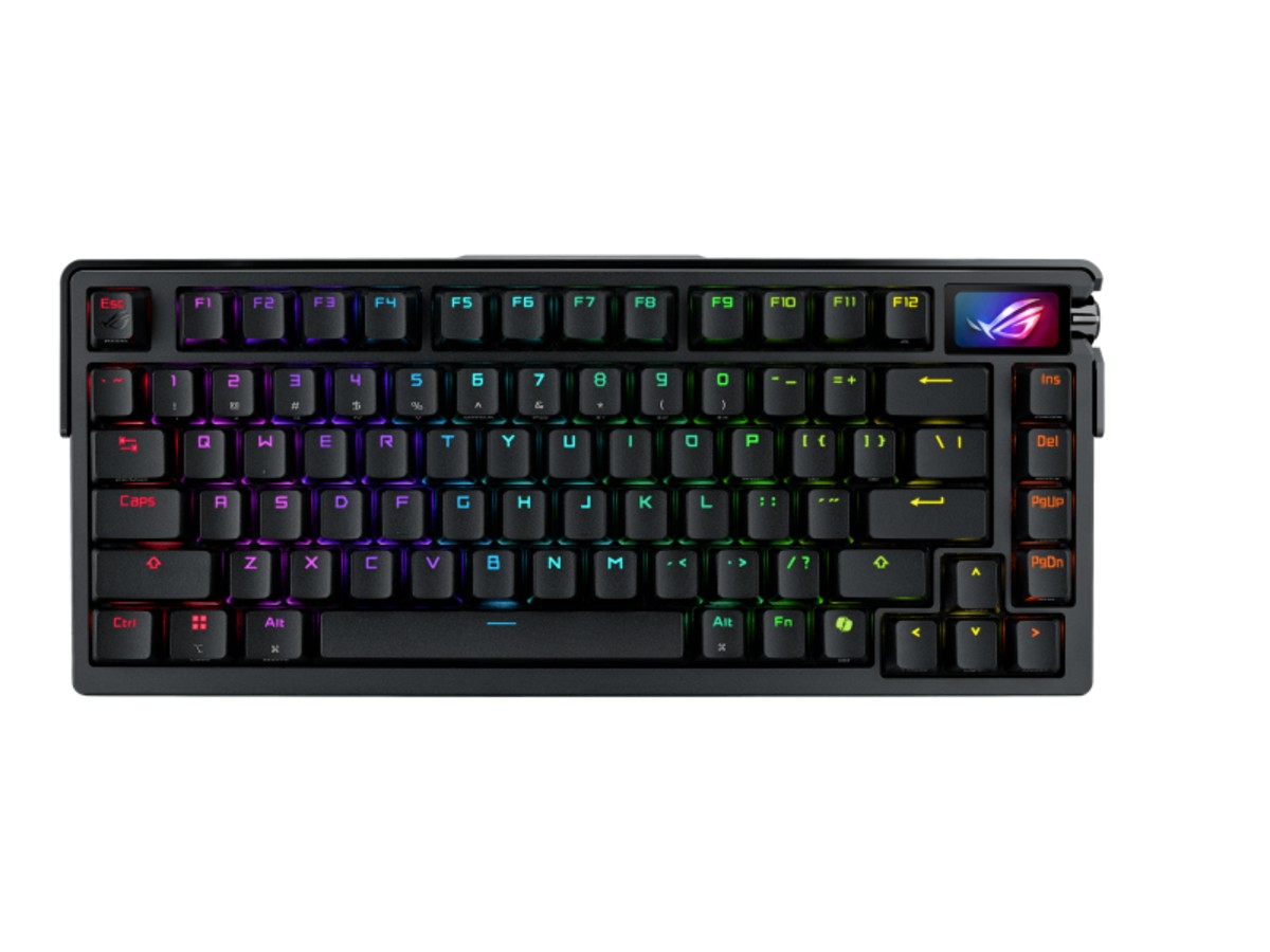 Klawiatura jest dostępna z przełącznikami liniowymi ROG NX Snow lub przełącznikami zatrzaskowymi ROG NX Storm, przy czym w obu przypadkach zastosowano również niestandardowe, przezroczyste powłoki. Choć jest to imponujące wizualnie, przezroczyste nasadki klawiszy mogą być śliskie i mogą łatwiej pokazywać odciski oleju niż tradycyjne nasadki klawiszy.