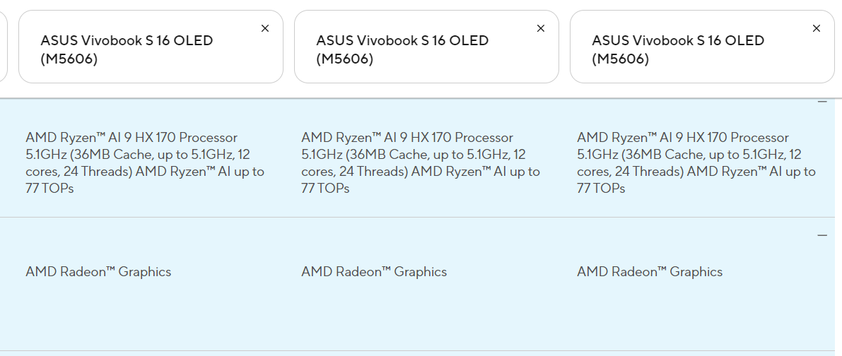Jednak zabrakło wśród nich nowego Vivobook S16 OLED który został zauważony na stronie Asusa (wersja zarchiwizowana) przez użytkownika X @harukaze5719. W przeciwieństwie do poprzednich informacji, ta ujawnia nowy schemat nazewnictwa procesorów Strix Point firmy AMD.